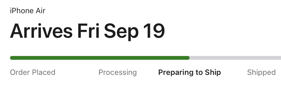 I was on 9/25 until yesterday when I switched to 9/19. I had ordered within minutes a 512 silver pro max. I was getting worried, but the Apple app just said it had moved to preparing to ship finally! Yay!!!!