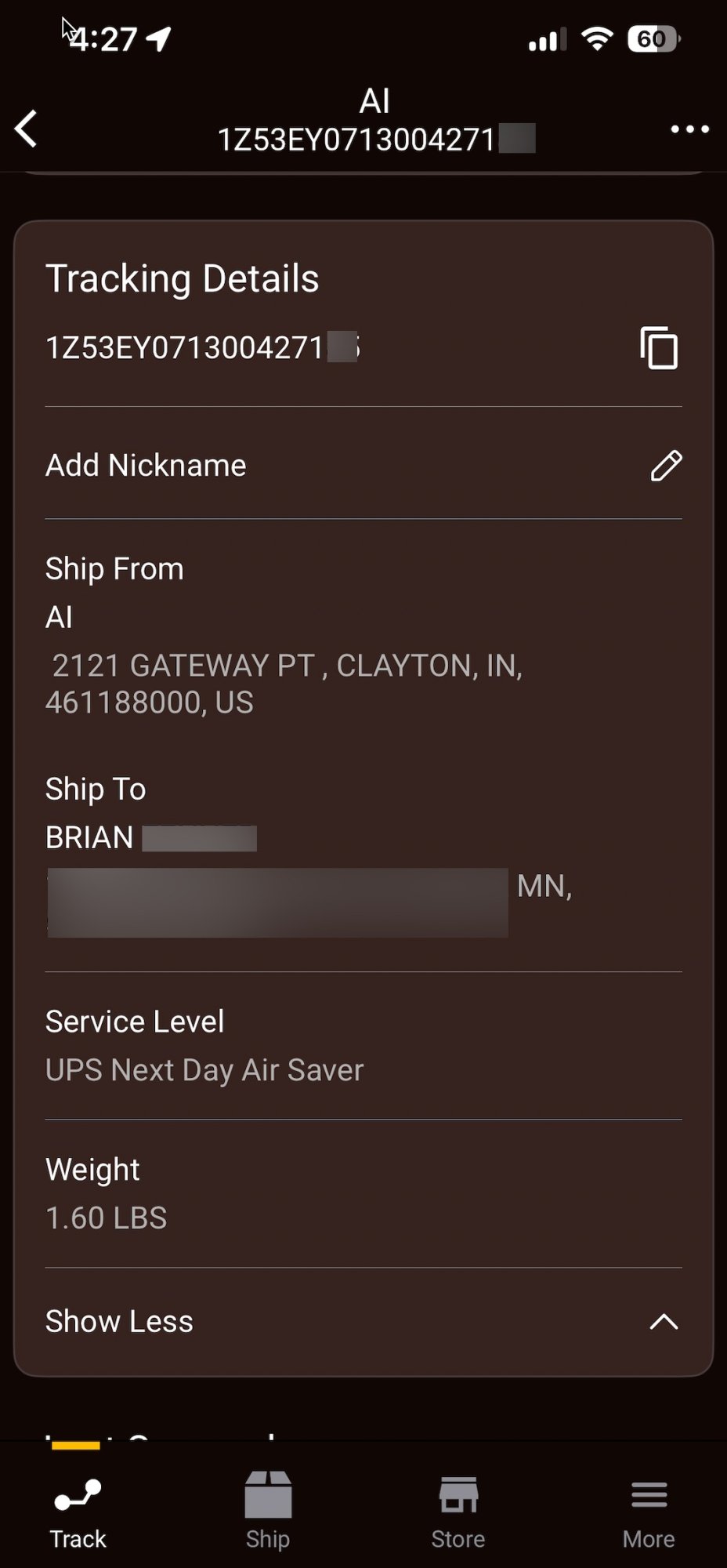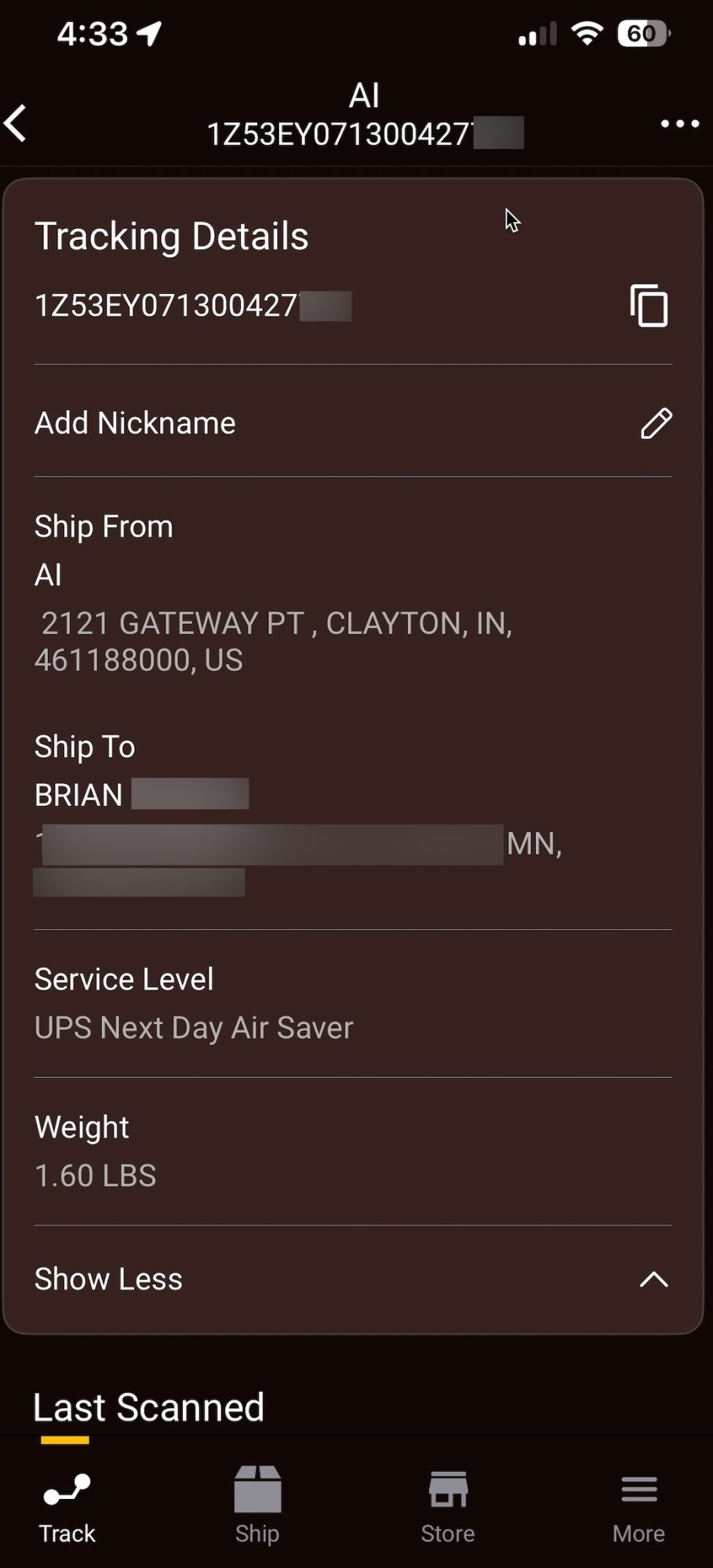 Was yours sent UPS next day air like mine?I’ve had 2 UPS labels listed for me since yesterday. Delivering Friday but waiting on pickup so I suspect they’ll actually start tracking the movement tomorrow.
