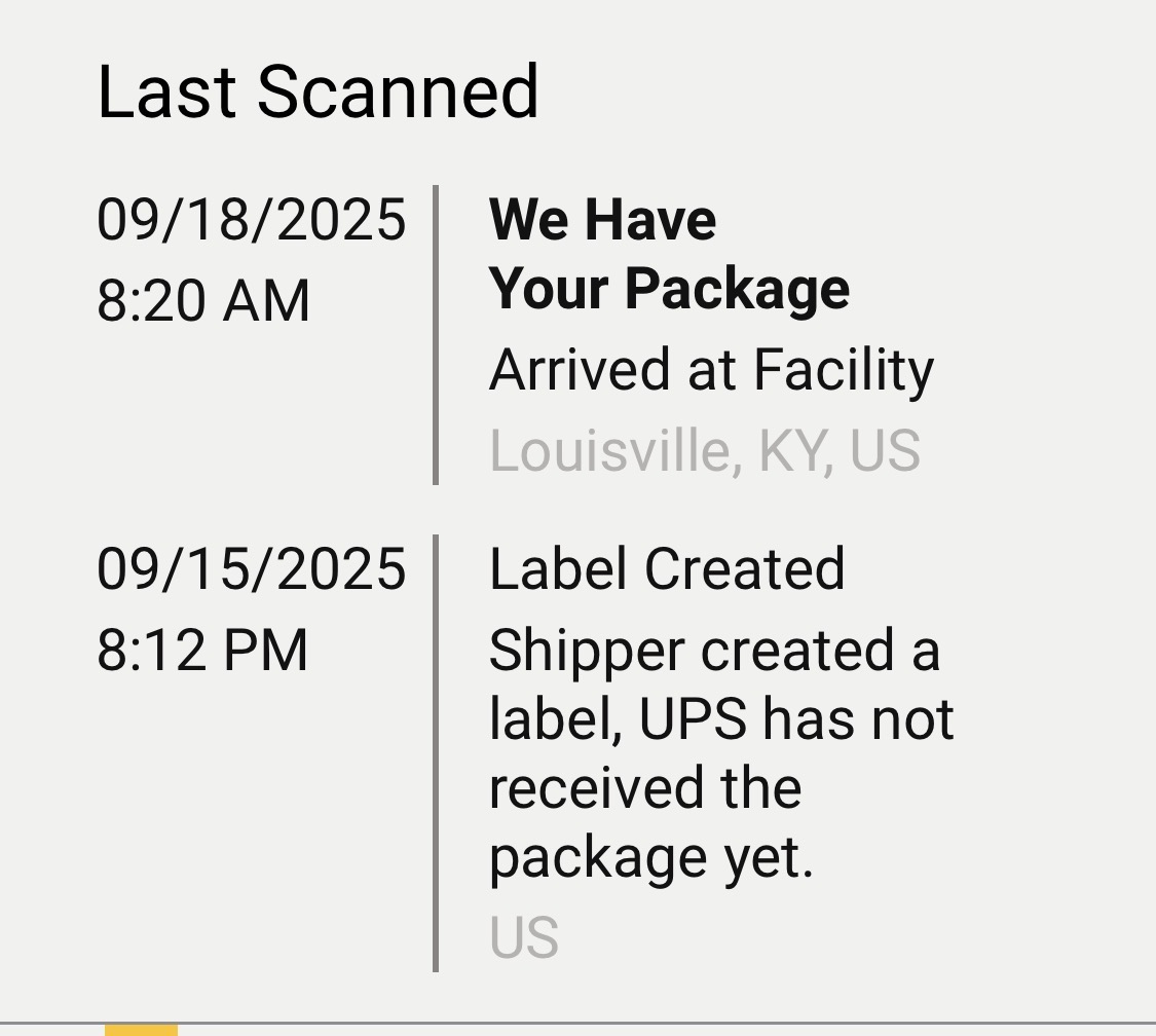 Did it start in IN or TN?UPS just updated one of my packages to “we have your package.” Nothing for the other two yet.