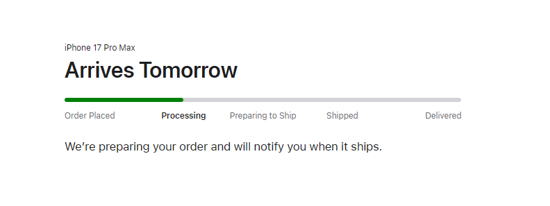 Same here - status won't change until your Apple store receives the shipment.Any action for those of us who are picking up in store tomorrow? Mine still says "Processing"🧍🏾♂️