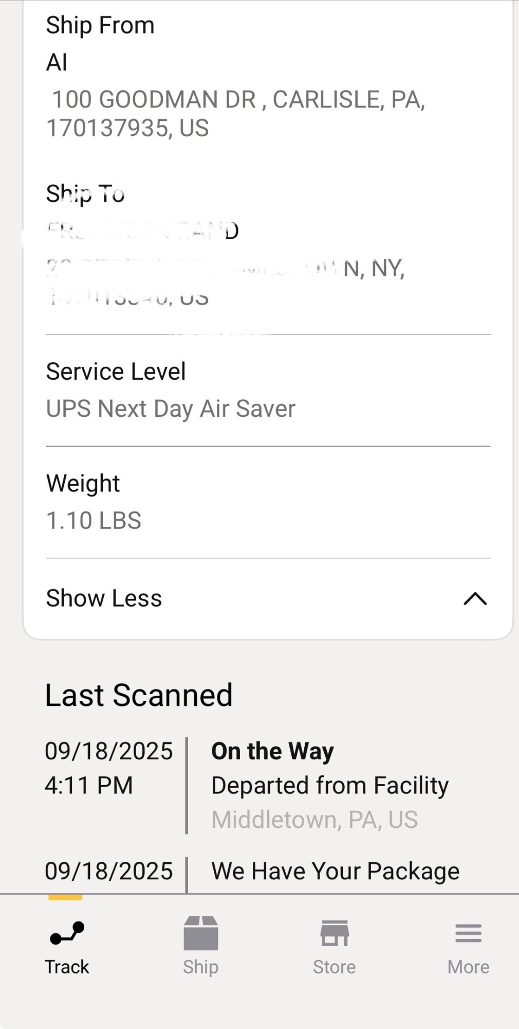 "We Have Your Package" as of 10:59 AM this morning.Anyone’s phone from Carlisle, Pa on the move yet?