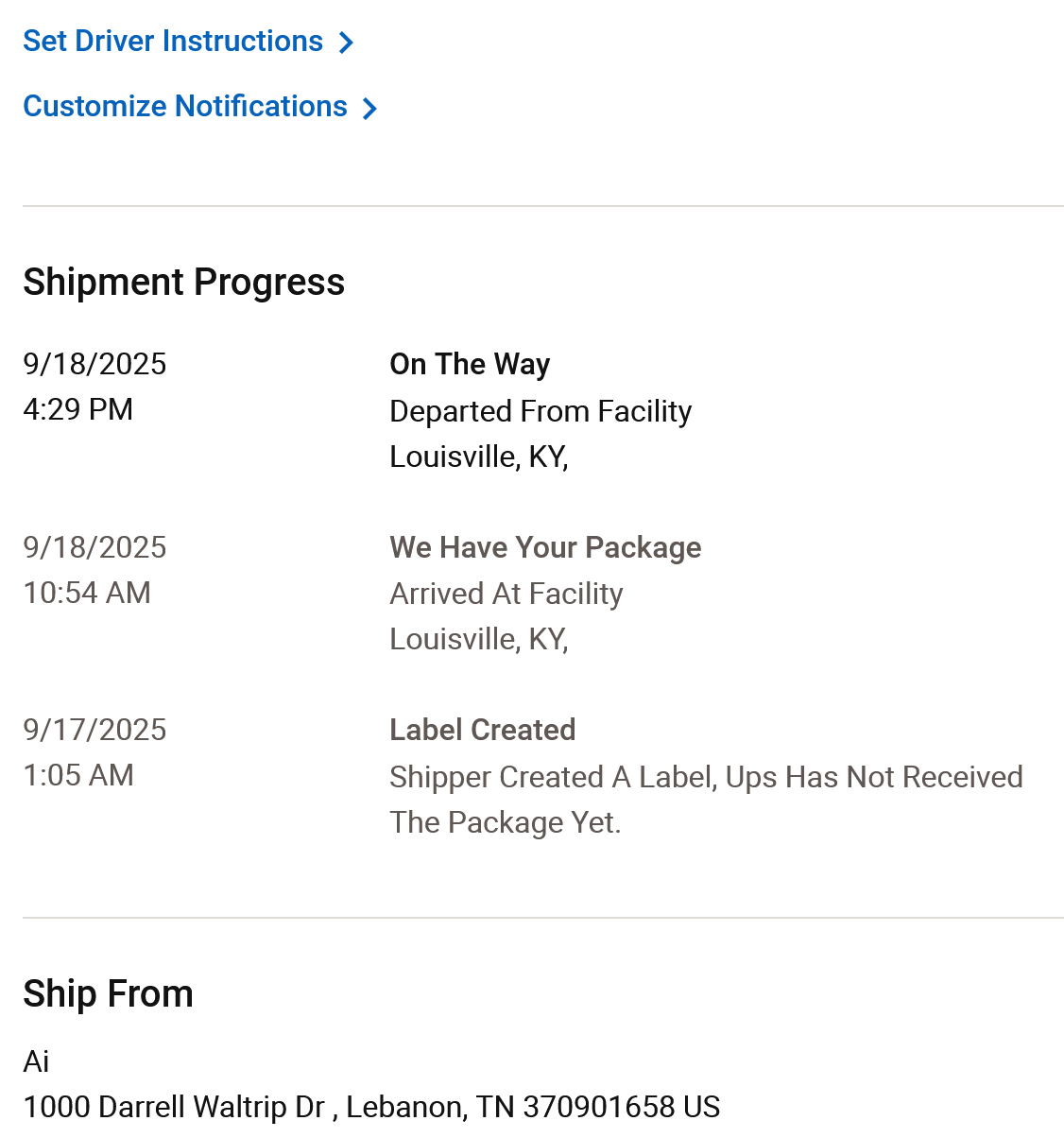 My AirPods have left Louisville, KY enroute to Commerce City, COSo look like my AirPods have been accepted UPS Carlisle, Pennsylvania, but my iPhone still has not even though I got shipping notification from Apple arriving tomorrow. But according to UPS, they have not received it yet.