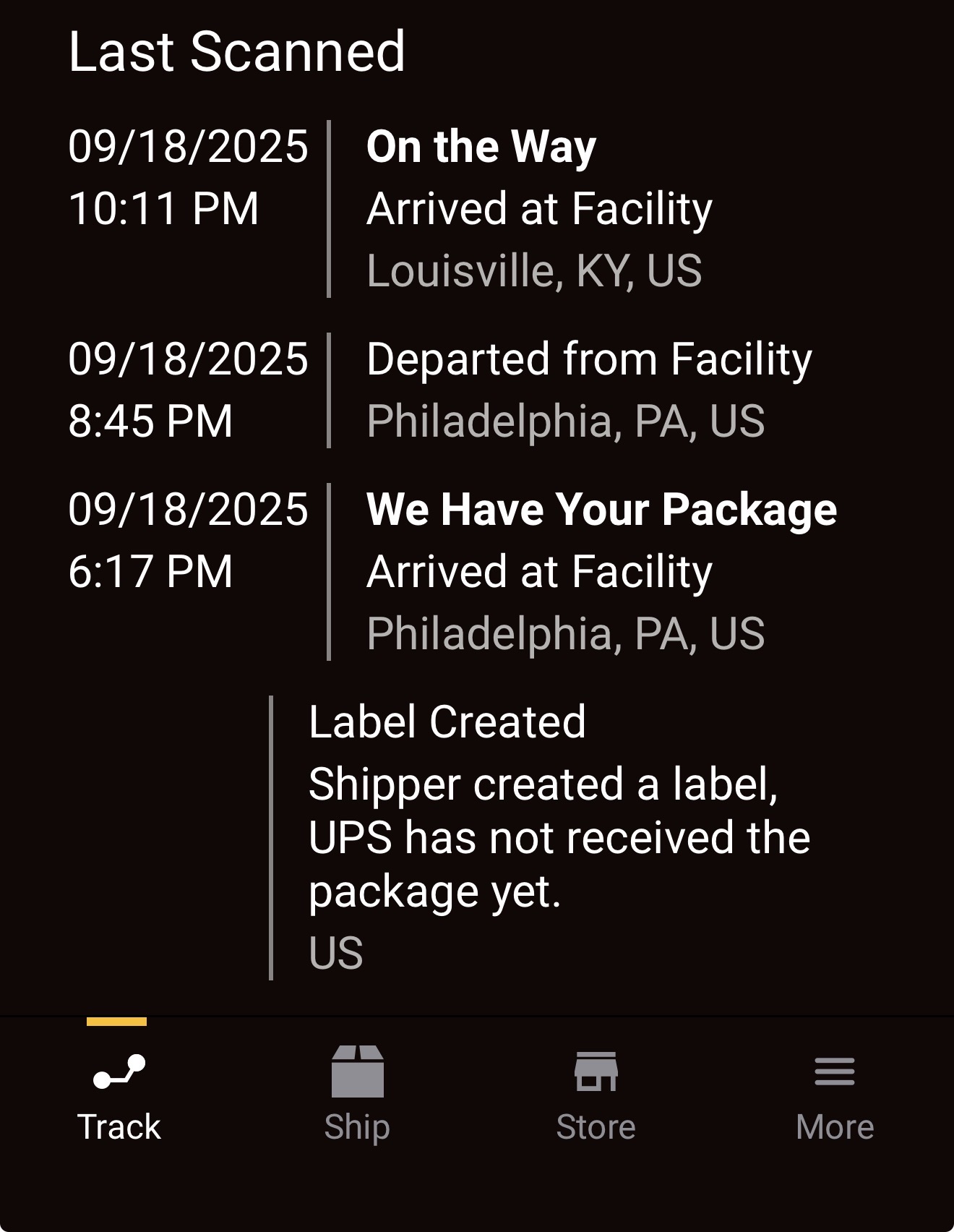 I am guessing they are being driven from Lebanon, TN to Louisville. It’s around a 2 hour drive. So hopefully they will be scanned in Louisville shortly.Same!! For me next day air arrives in Detroit metro airport, via Louisville …usually around 2am