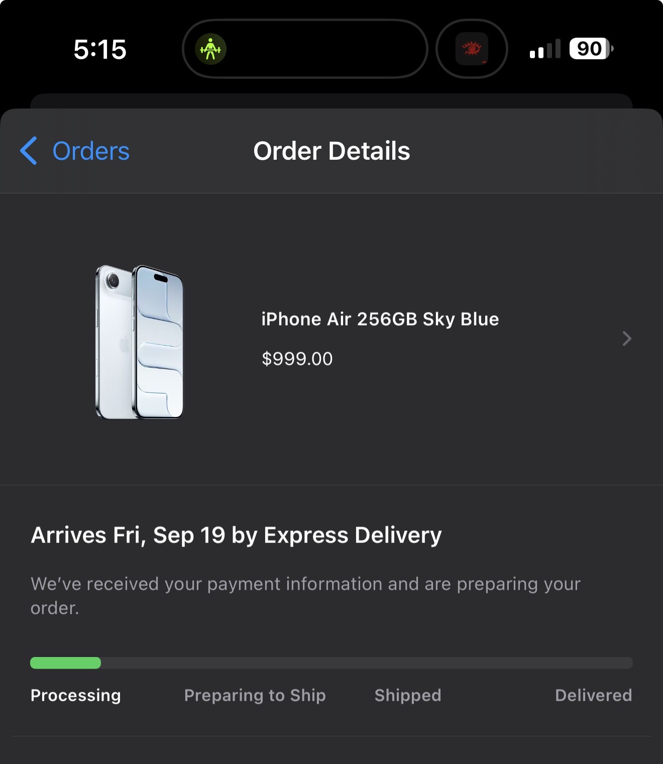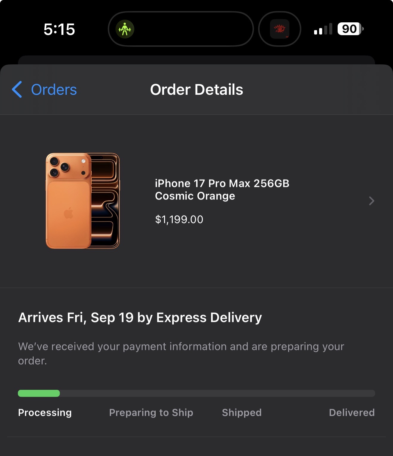 iPhone 17 Pro Max Deep Blue 512GB ordered. Picking up at the Apple Store around 11am.