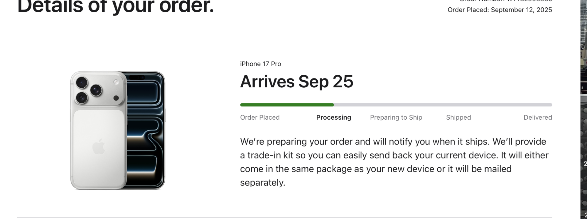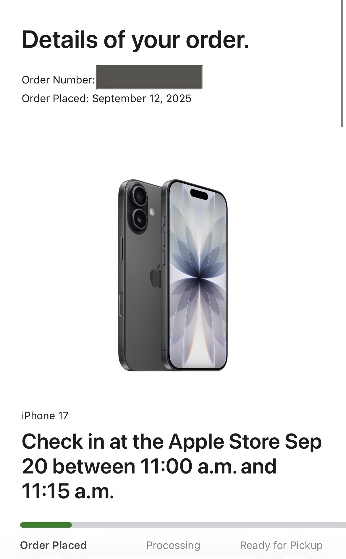 Was able to pre-order a 17 Pro 256GB Blue for my wife even right before 09:27AM Eastern for release Date (09/19). apple store app + apple pay - Delivery(not store pickup).