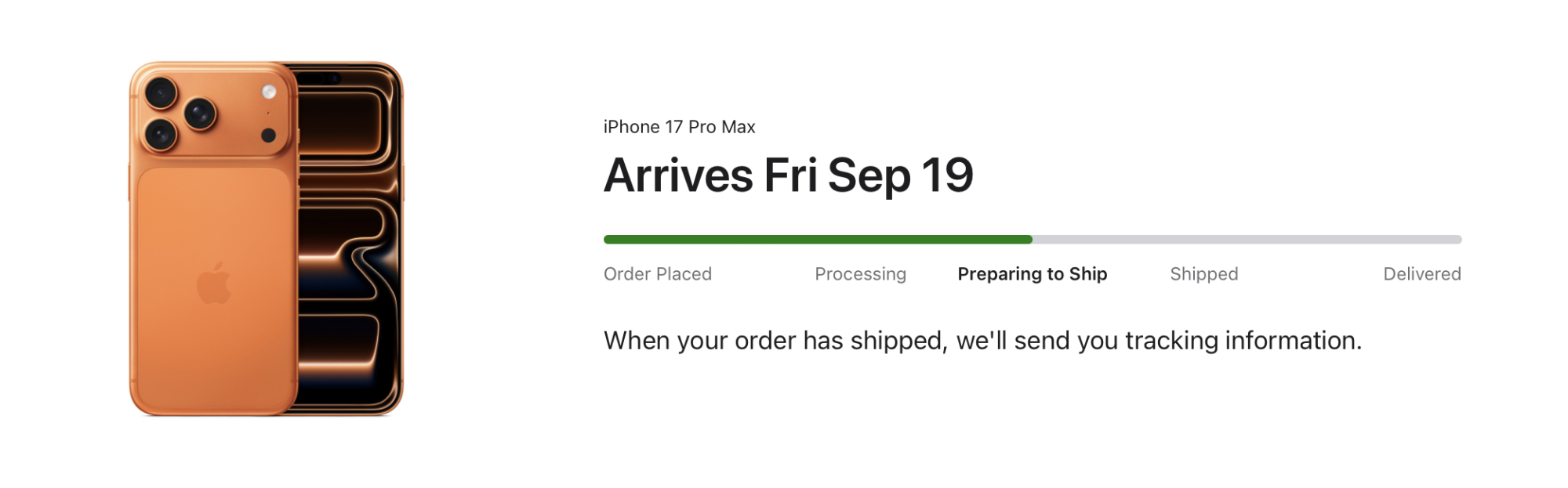 Mine is set to deliver 9/19 and the status is already 'Preparing To Ship'