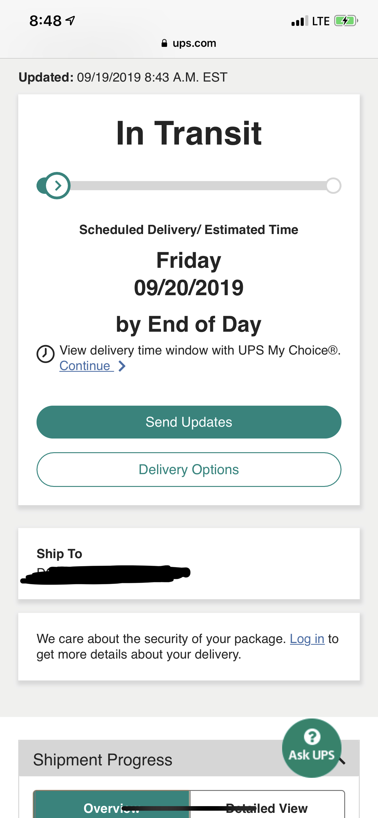 I’m starting to get a little nervous. My UPS account isn’t showing anything, and I have received no notification from T-Mobile. My T-Mobile app just has a ships by date of September 20. And under my EIP information the status is active/shippedNope. I have a UPS MC account and its showed up on there.