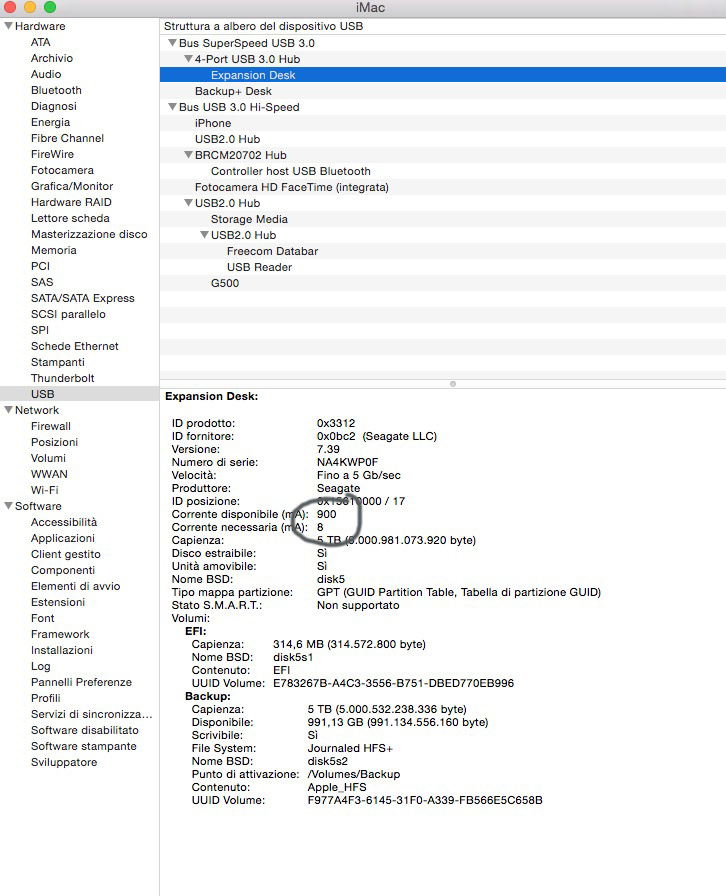 Hi just got a seagate 5tb expansion hdd, connected it to my imac late 2013, checked if both hdd's, (the new and the other seagate 4tb backup plus) are at 5gbps speed. all ok! started copying the 4tb files from old hd to the new. for about 30min speed was ok, then it slowed at below 480mbps, tried blackmagic speed test and it goes at around 10mbyte ps. checked the speed from utility and its still 5gbps but the problem is that it consumes only 8mA current while the other hd requires 144. usb bus dont get enough current. how to fix it???