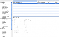 However when I tried it doesn't seem to work. When I installed a similar card with the NEC D720200F1 chipset, hooked it up to the internal power, and after trying various PXHCD.kext files (all which have worked for others on other forums) mine doesn't seem to want to recognize anything plugged into it, USB 3.0, 2.0, or otherwise. What really doesn't make sense is that the PCI card and USB connection both show up in the system profiler. The only thing I can think of is that there is some other kext or some other file that is interfering with the proper functioning of this card. (I had a similar problem a while back with a LexarUSB.kext that was interfering with reading DVDs in my optical drive, but once removed it was golden....how someone figured that one out baffles me lol). Anyways if anyone has any suggestions out there, I would love to try them out.