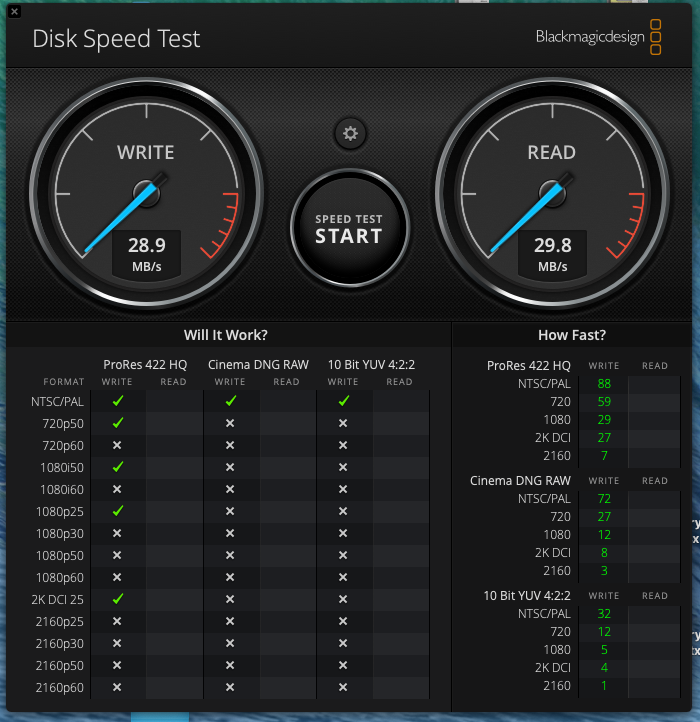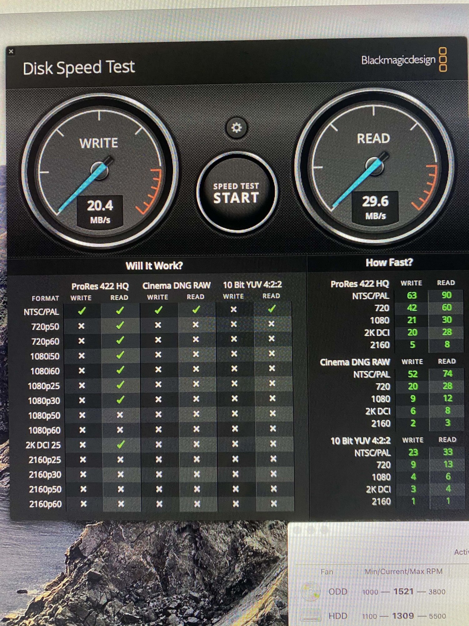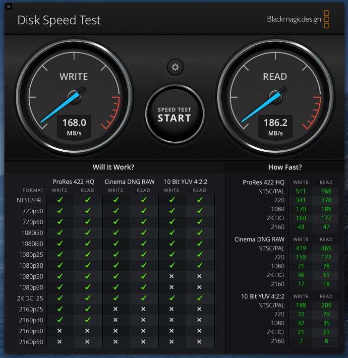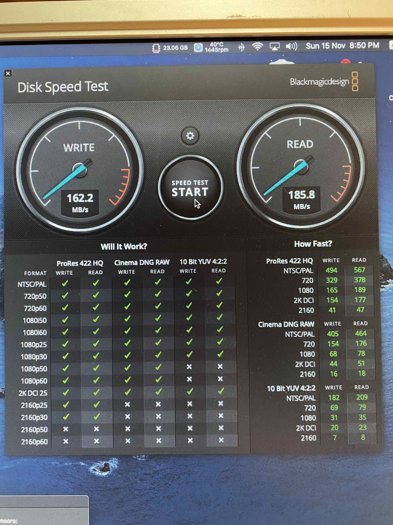 Speed test of the Samsung T7 USB external 2GB SSD via the USB 3 port WITHOUT the intervening PCIe relay - minimal speed gain. (My prior test of higher speed used wrongly the internal SSD for testing.)