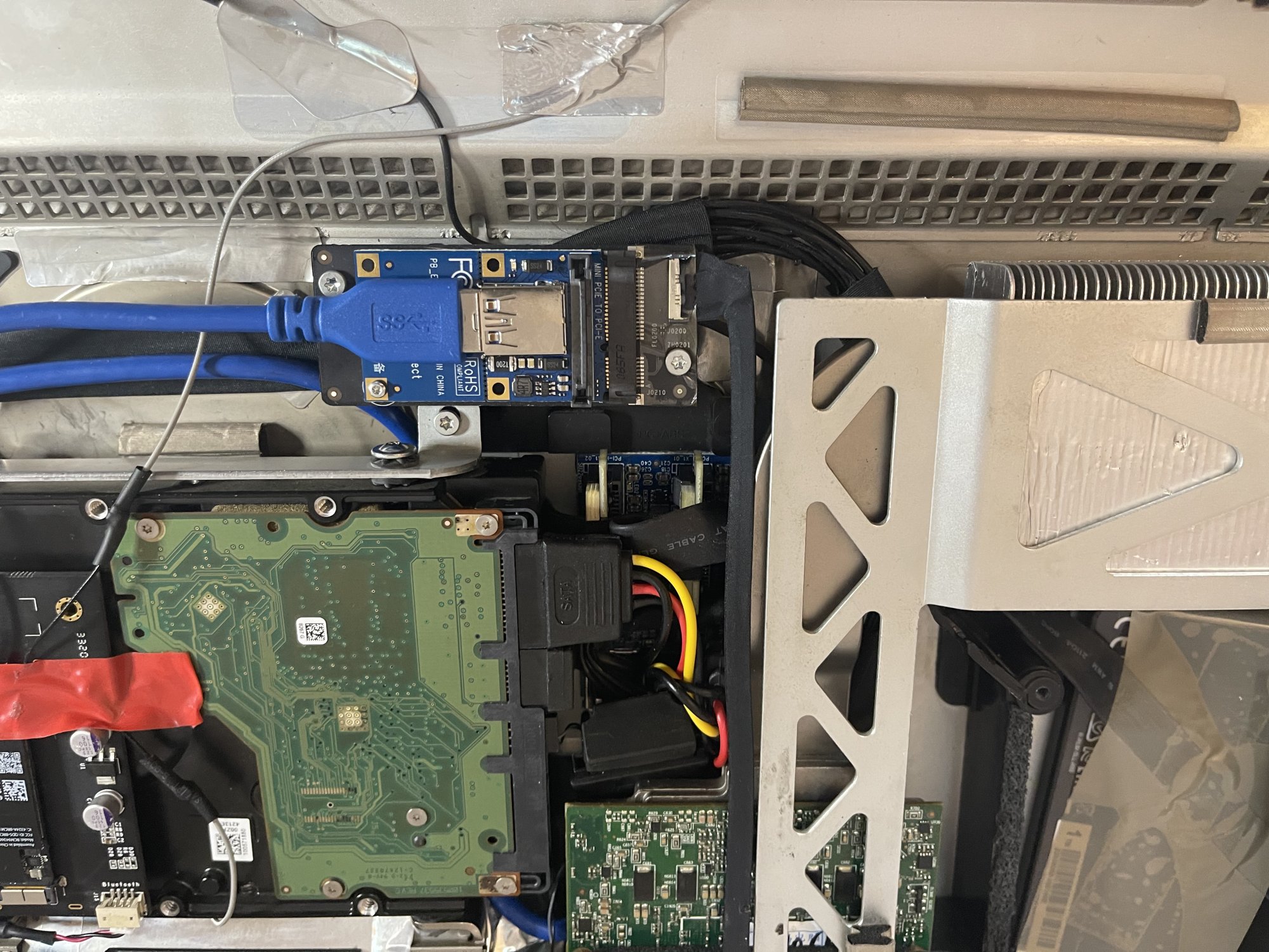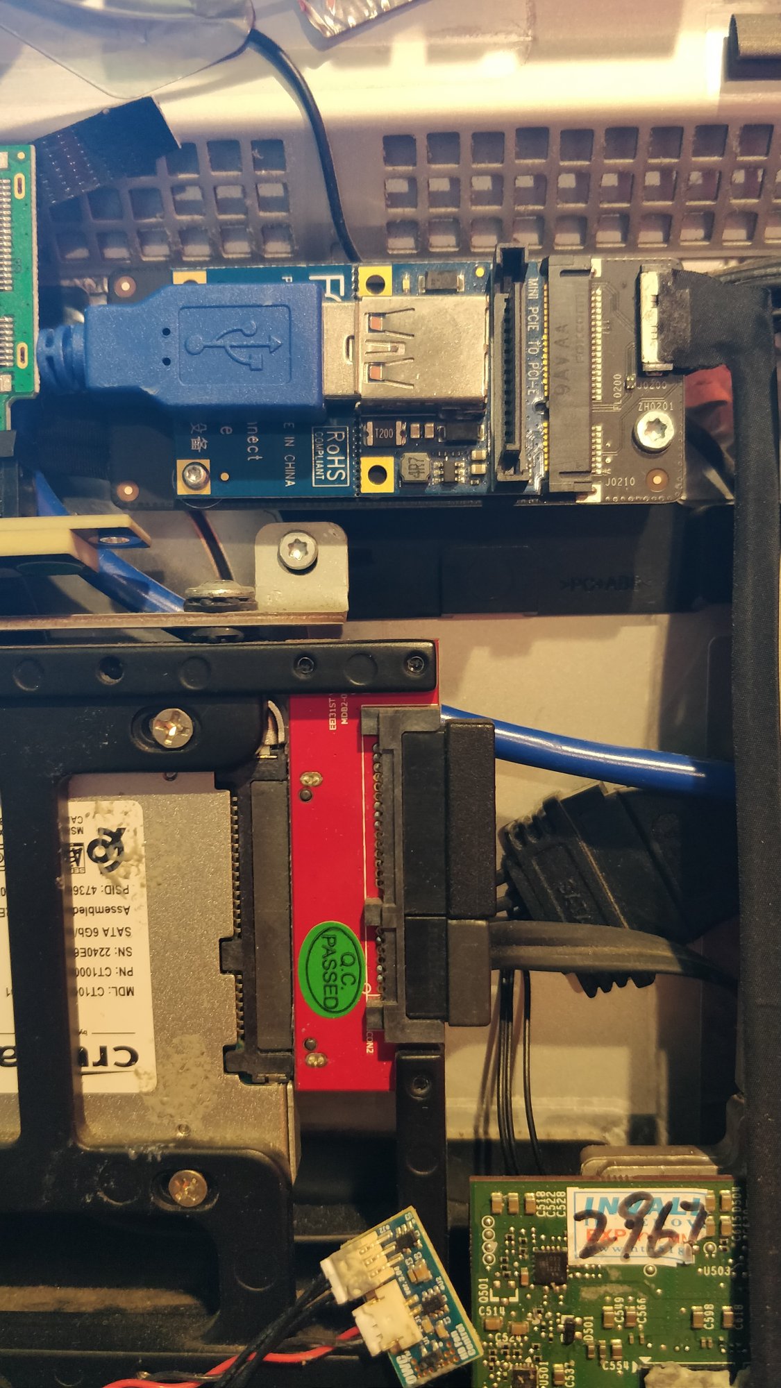 {Ref: The mPCIe slot is of PCIe x1, max. ~250MB/s. USB2 has max speed ~60MB/s, while USB3 ~625MB/s.}