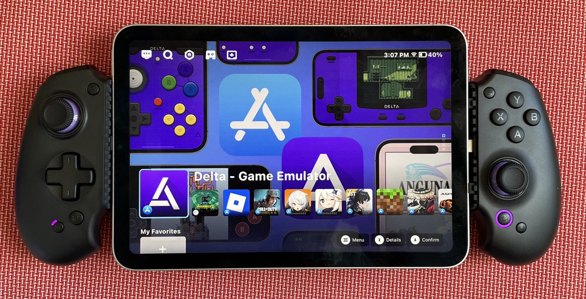 Playing a game in the Delta emulator, likewise there isn't an extra "Menu" button on the X5 Lite that will open up the Delta menu rather than the emulated game's menus. But at least in Delta if there is a button that's not used for a particular console, you can remap it to the Menu button.