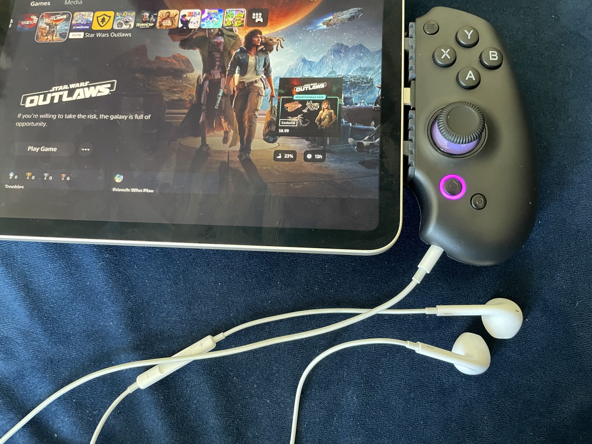 To start, the iPad doesn't even recognize it out of the box. It took a while to realize it ships in "Android mode", and tiny print in the manual reveals it has to be changed to "Switch mode" to work on iOS. Hold down "select" and "start" buttons for 5 seconds, GameSir logo button goes from blue to red, and then the iPad will see it.