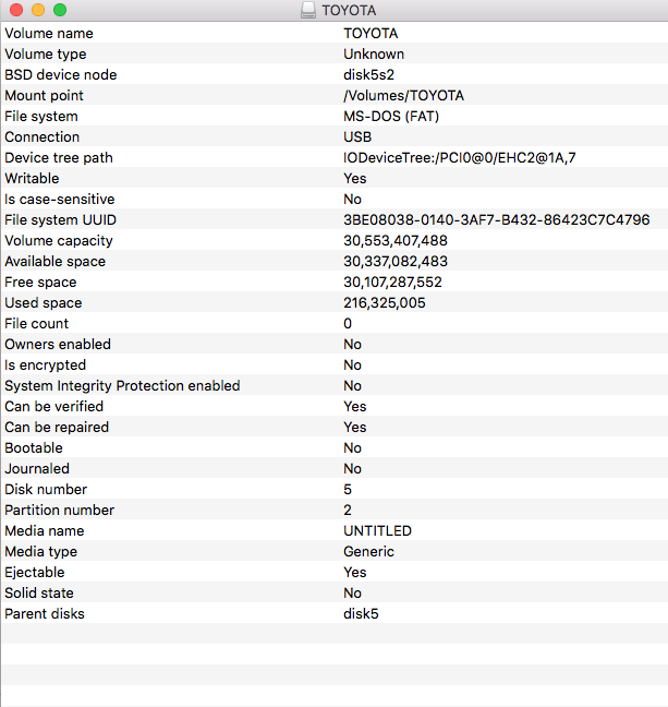 So something is definitely going on with this drive, but it's really new. Like I've only used it a couple of times before this. And I'm thinking the fact that the file count seems to think it's zero might be why the car is telling me there are no music files.