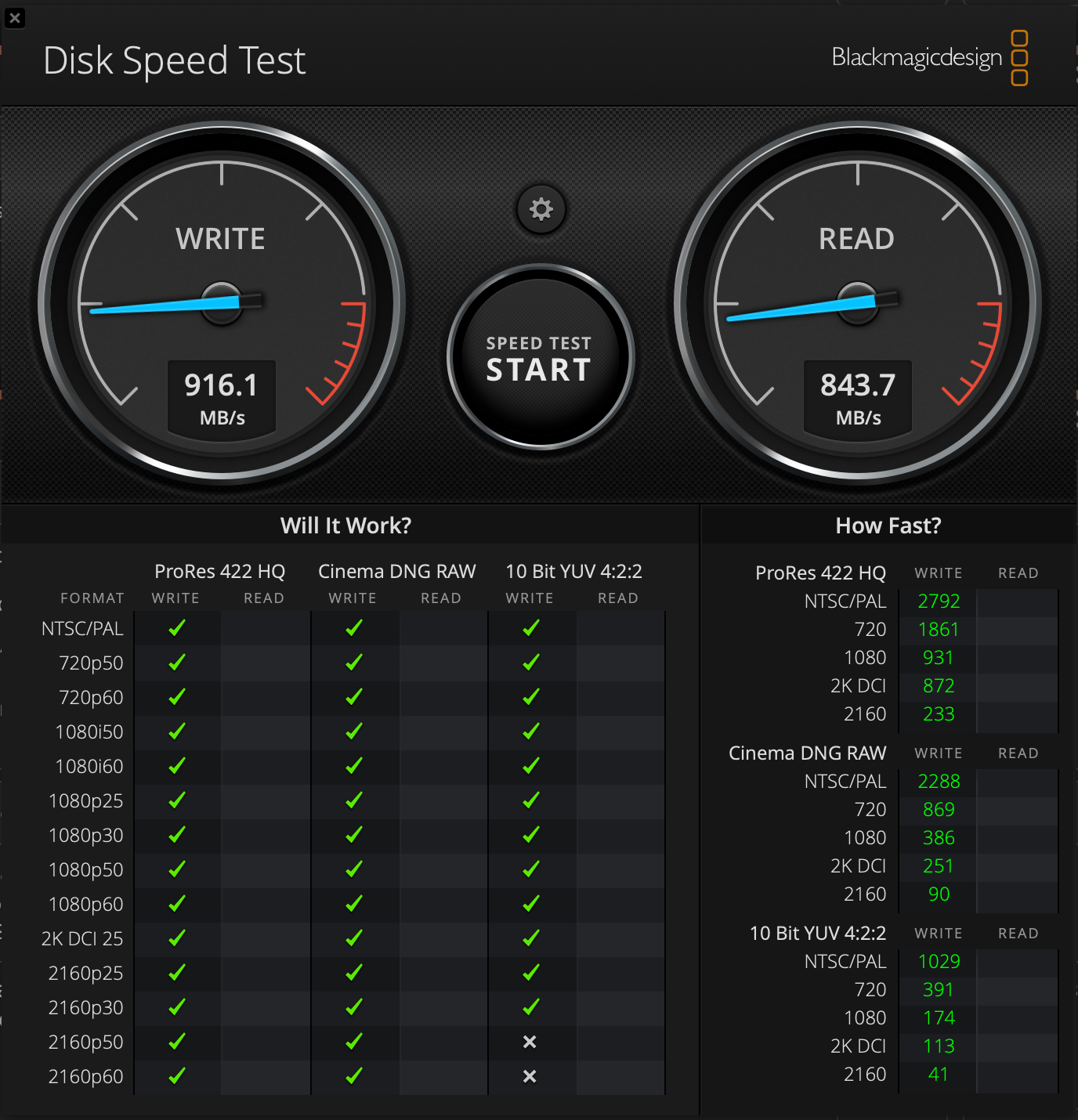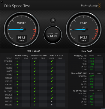 Black magic disk speed test reports ~103 write and ~760 read