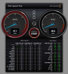 LaCie 1TB USB2 read = 37MB/s, write = 39MB/s (mains powered)