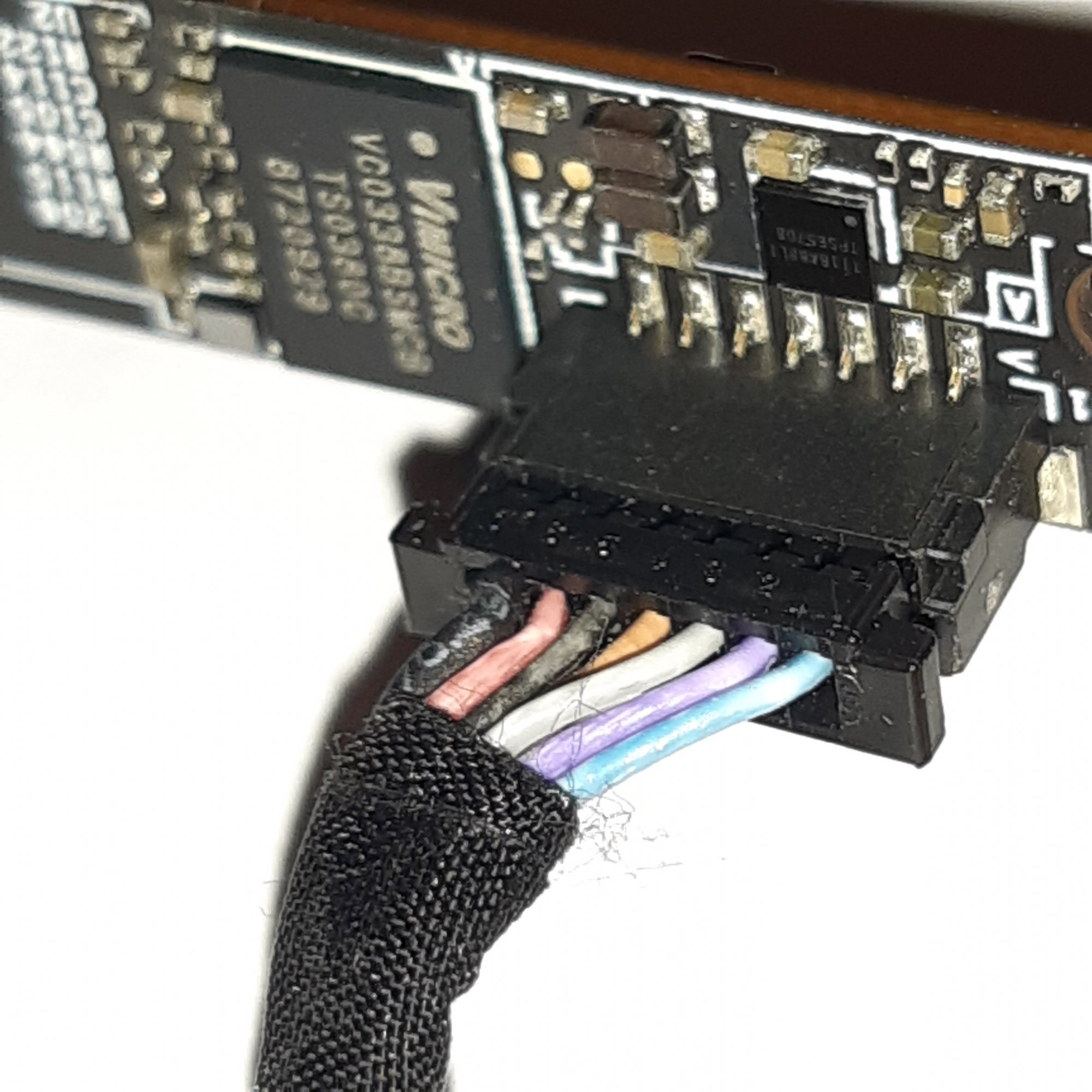 From top to bottom (thick black =1, orange=2, etc):Hi! I`ve the same problem of r6smile but bable colors are black, grey, purple and brown. The think is to connect to an usb cable.