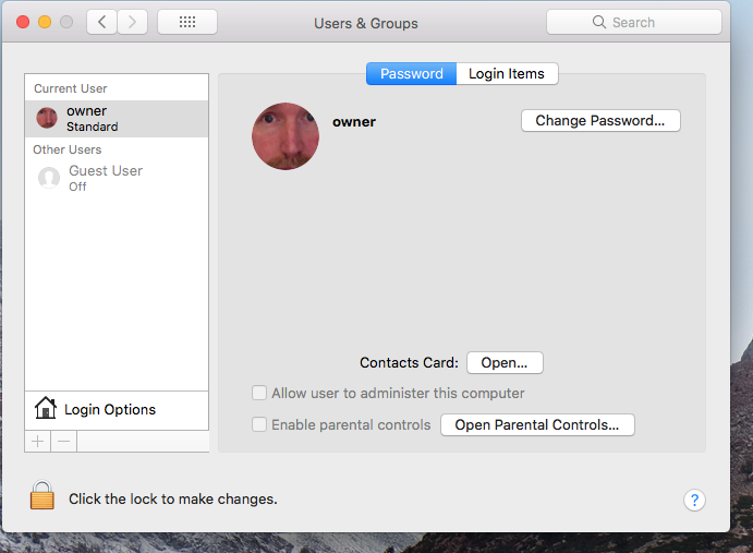 In setting it up, went to change the name of the Admin account from "owner" to my name, and change the pwd.