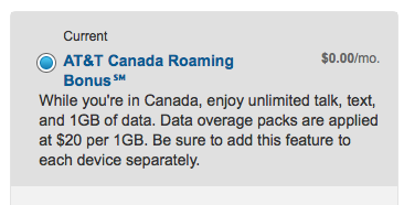 I called AT&T and one guy said that my mobile share plan would include talk, text and data in Canada, but another guy said that's wrong and that I would only get that if I also had AT&T cable internet or DirecTV. He said I would have to buy their passport to get text and data and a discount on calls.