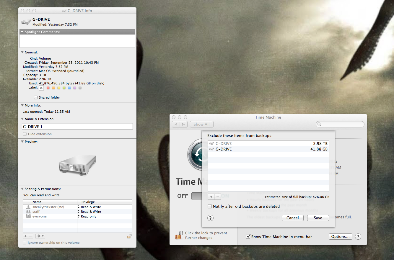 After having an external HD fail on me and losing all of my data, I decided to get a 4TB G-Drive to use as my dedicated Time Machine drive. I have another 3TB G-Drive that I'll be using to store data to replace the failed drive. I want to use the 4TB Time Machine drive to backup the data from the 3TB drive but when I go to Time Machine preferences, that drive is greyed out and can't be included. The drive is already formated for Mac from the factory so I'm not sure why it's greyed out. Can someone help?? Thanks in advance.