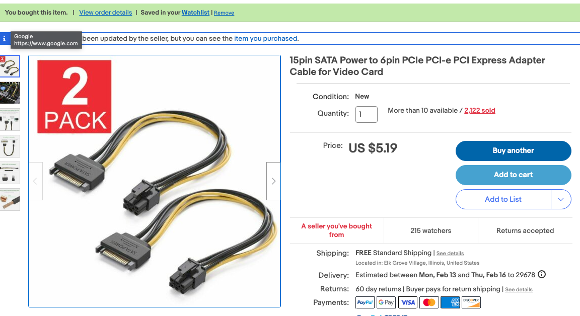 Just a quick run through of what you did with them all will help me miles, I've never installed a gpu that uses any cables, just an MXM slot GPU in an iMac before which you just had to slide in, these pins connectors and adaptors talk is confusing me lol, i re read it several times and ordered what cables i thought you used lol but i am still a little losthey, i did not do pixlas.