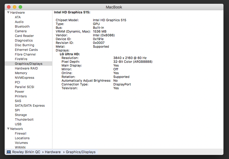 are you able to charge your new 15" with either the included cable or the white apple one once you turn the off the monitor? I plugged my laptop in thinking it would charge overnight... nope! dead batteryI'm using the LG27UD88 monitor with a 2016 rMB m7 over USB-C and I am quite disappointed with how it looks at all resolutions. The fonts just don't look smooth even at 60 Hz unless it's 1920x1080 (screen shots at 72 dpi below). I don't know if it's my expectations that are wrong but I essentially want to have a bigger version of my rMB screen! The one positive is that I haven't noticed any lag at all, but then I haven't yet had a chance to put it through its paces much.