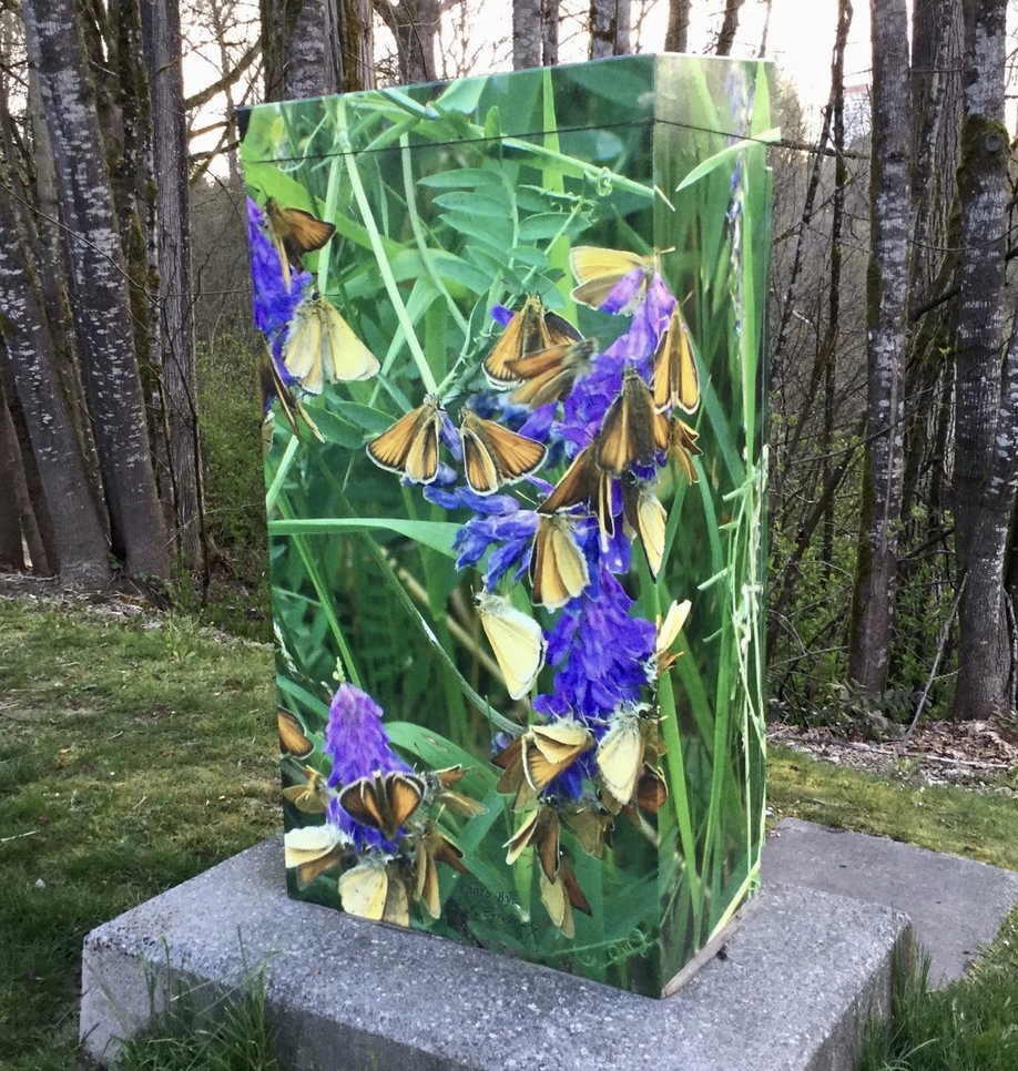 Decorating these boxes in this manner is a relatively new thing here. I have attached examples of some interesting and colourful ones I have personally observed, and captured during my walks, wanderings, and our local travels in communities and neighbourhoods within the Lower Mainland of BC (New Westminster, Burnaby, Mission, and Harrison).