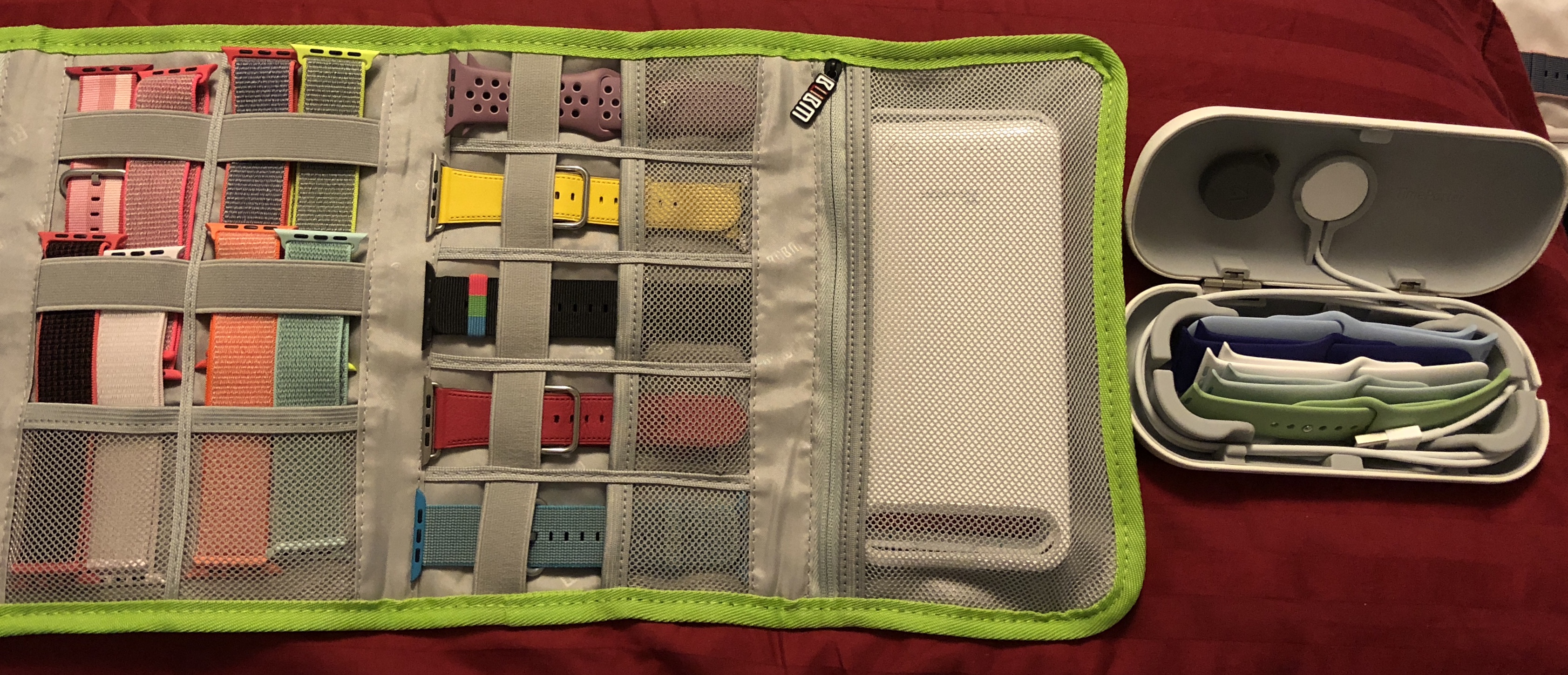 Thanks for the tip! I've been using that cool 12 south case that doubles as a charging stand, but it doesn't hold many bands, so I'll look at this for my upcoming super long trip.Amazon. I have ordered and tried several cases that others had suggested and they were too large or not the right "look" I wanted; this one is perfect. Plus, almost every time I traveled, TSA agents stopped me to see what all the loose bands were before I got this. #notkidding <facepalm>