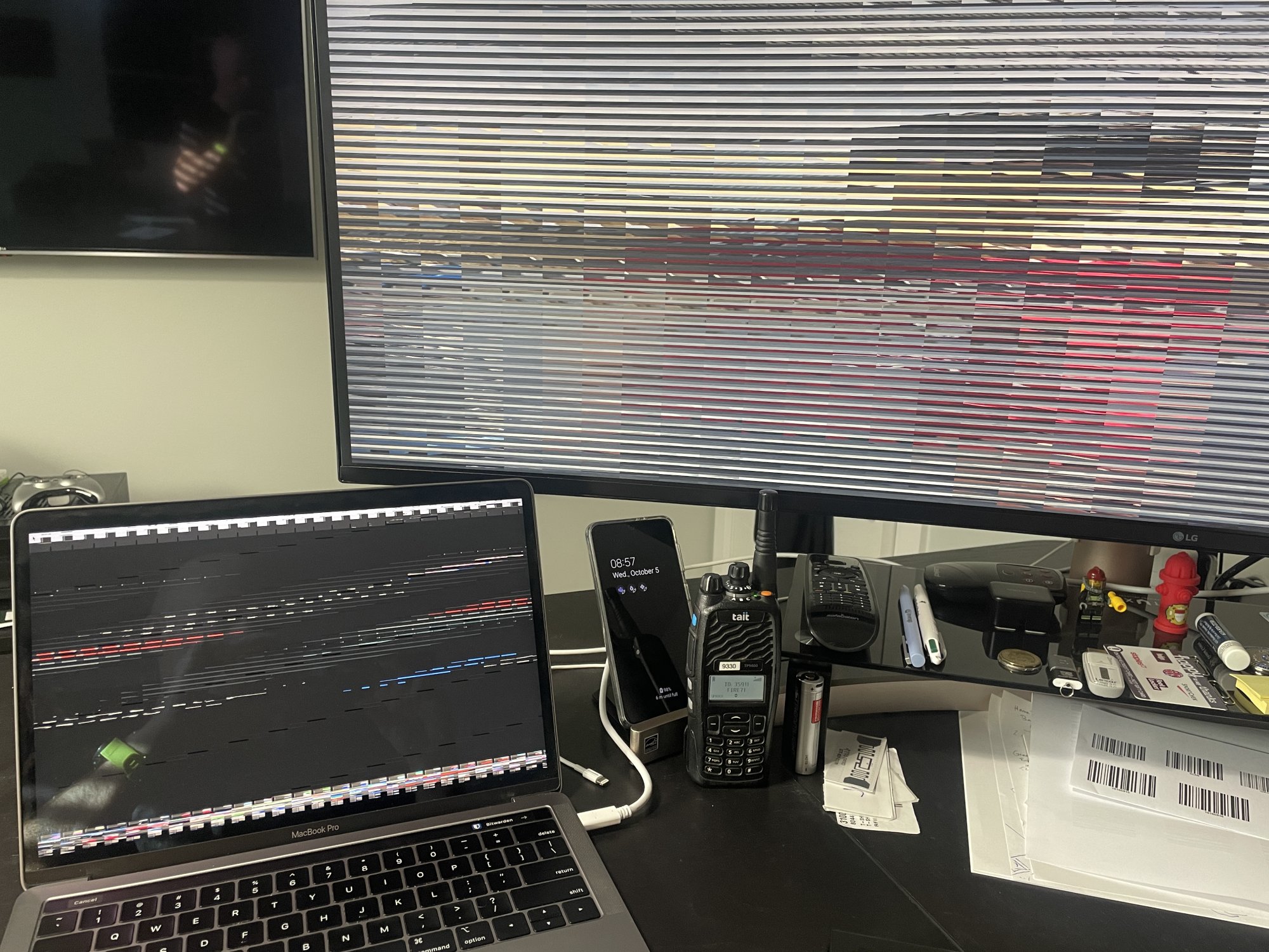 At this point you may wanna check if you have a faulty adapterDidn't fix it for me... made it worse actually... When I plug in my external monitor, both screen still go garbled, before I was able to unplug my external screen and my laptop screen would correct itself, now, I have to reset my laptop by holding down the power button....