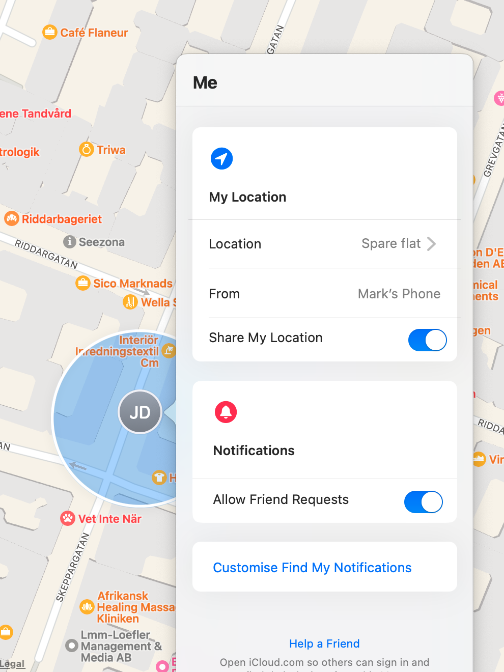 (I use my iPhone as my main "Find me" device for sharing my location)