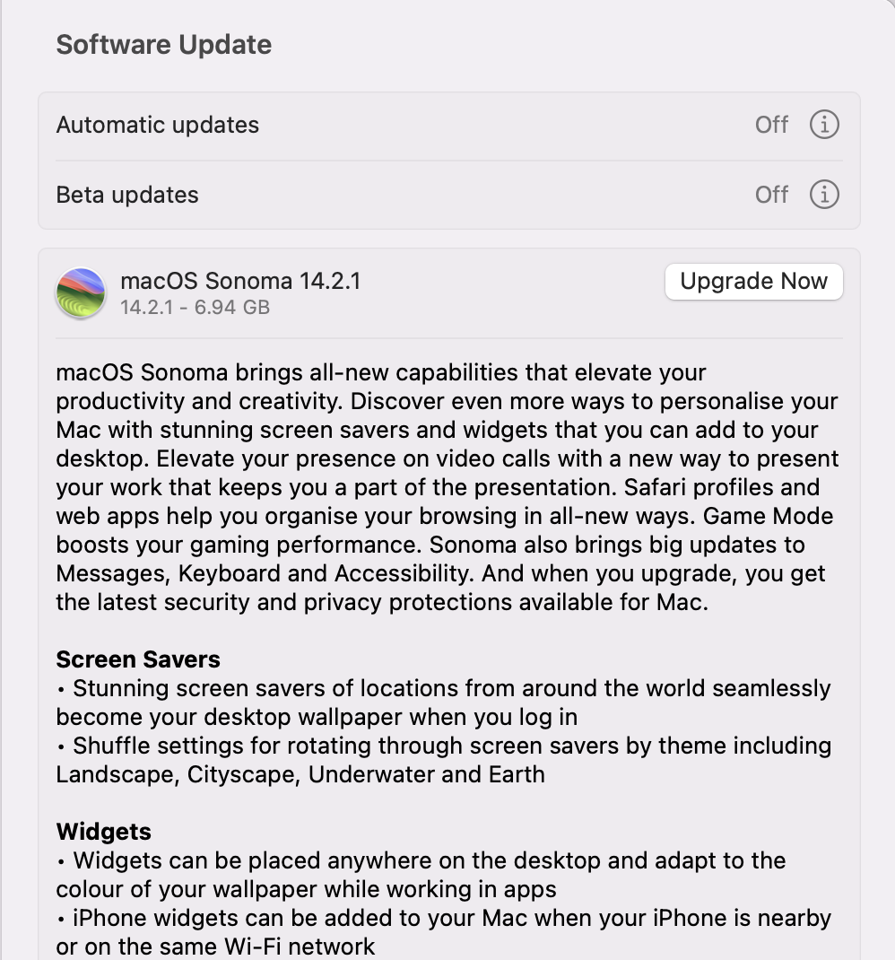 I had the same Software Settings set and my up to date Ventura SSD which got updated today to Sonoma when I change my Start Up disk to my Sonoma SSD and selected Restart. For some reason Software Update thinks Download new updates when available is now Download upgrades. First time for me a macOS upgrade happened without my permission. Ouch what a PITA..Someone asked for a screenshot of my disk util (I wiped it clean before my Ventura downgrade. Also attached the update settings. Definitely didn't tell my Venture install to upgrade to Sonoma.