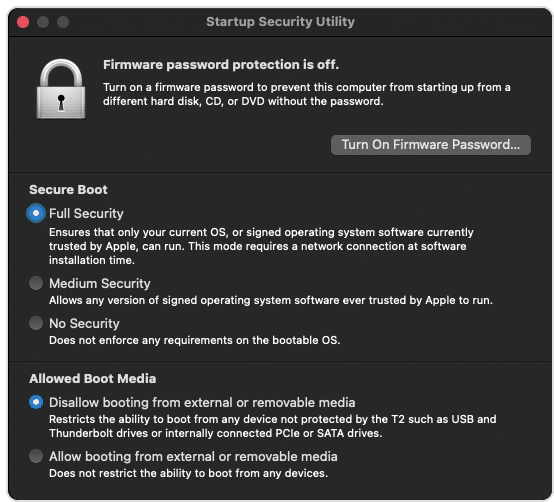 I can't boot from an external drive and I think it is because of Apple's "security".