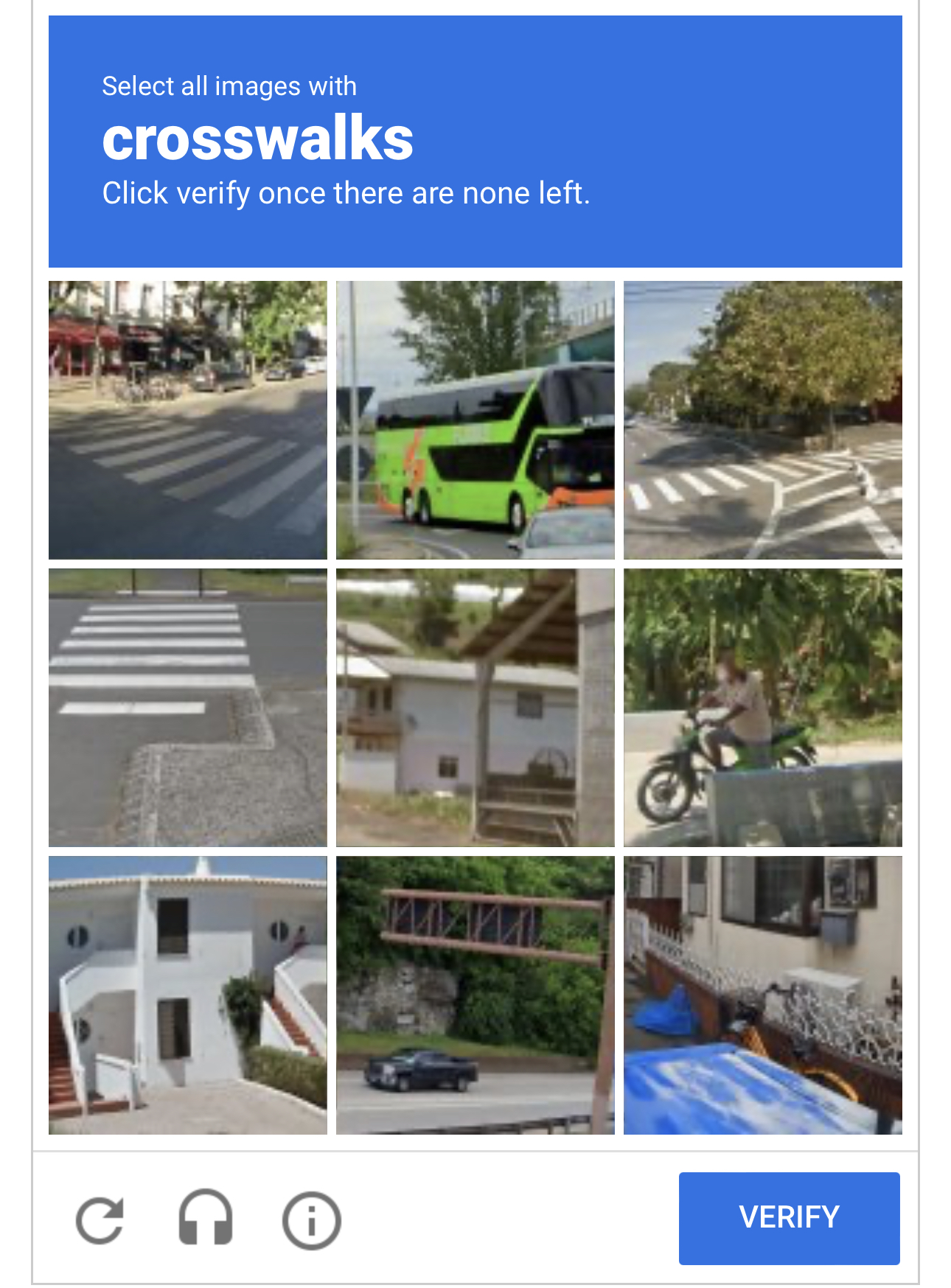 I get these verifications whenever I open a new web page in Safari every time and the capture process often goes on for nine or more different scene selections, hydrants, bikes, cats, bridges, crossings 😩