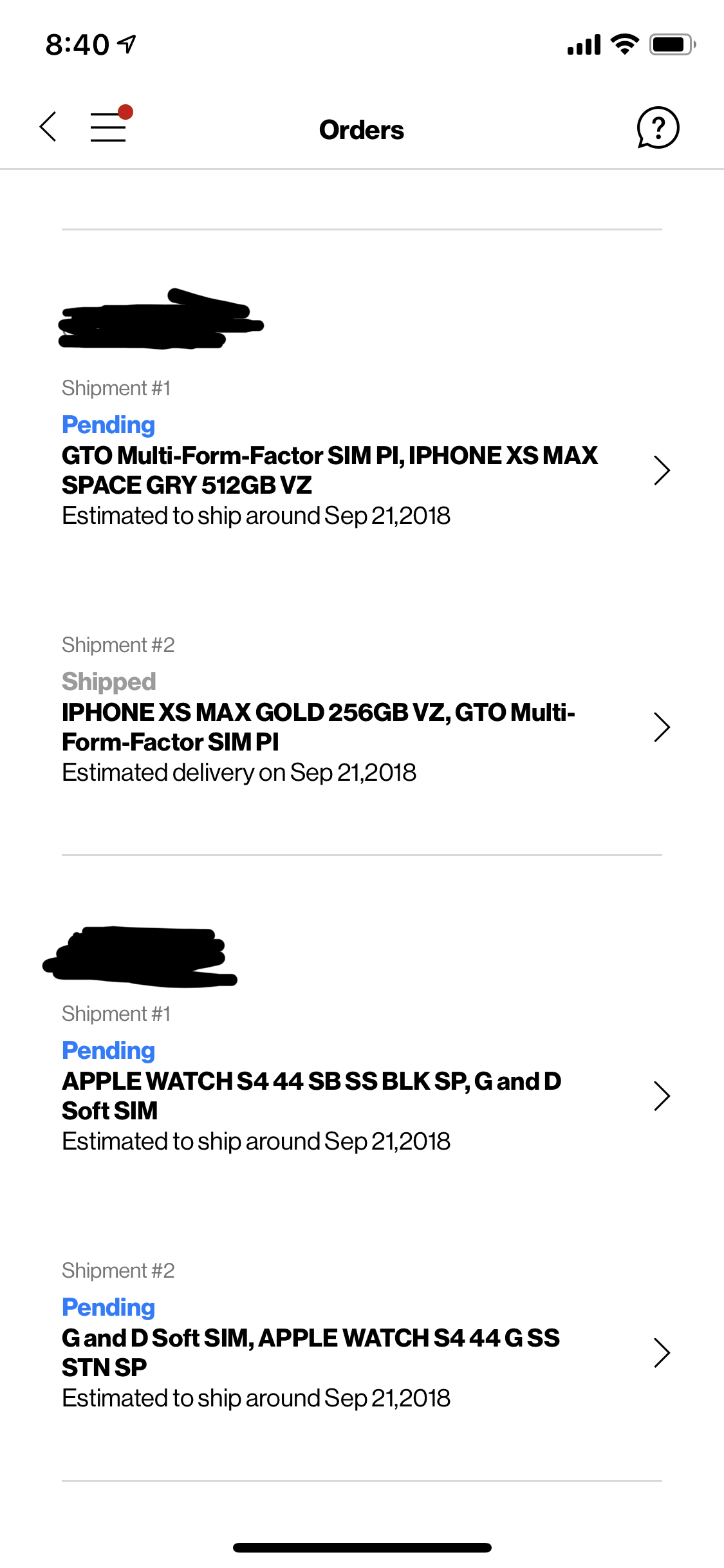 So I saw the email this morning that my card was declined for both orders and I would have to go to the Verizon store and pay with cash??? I had PLENTY of space on my credit card and I never received any kind of alert from my cc company that they thought the purchases were fraud? Needless to say, I just spent probably an hour and a half being bounced from person to person at Verizon trying to update my card info...They had no problem updating the info for my watch, but of course they couldn't fix the one for the phone. I finally spoke to a lady that was super helpful. She unfortunately had to cancel the phone order, but she promised me that she would request that I be bumped back to the beginning of the line because this wasn't my fault. I hope it really does work out because I'm frustrated at this point. What was the point of me ordering at 3:02am for me to not get the phone until October 3rd??? Ugh!!