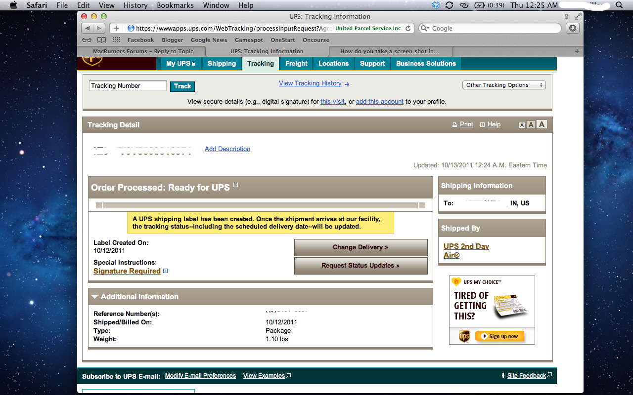 United States 10/12/2011 10:17 A.M. Order Processed: Ready for UPS