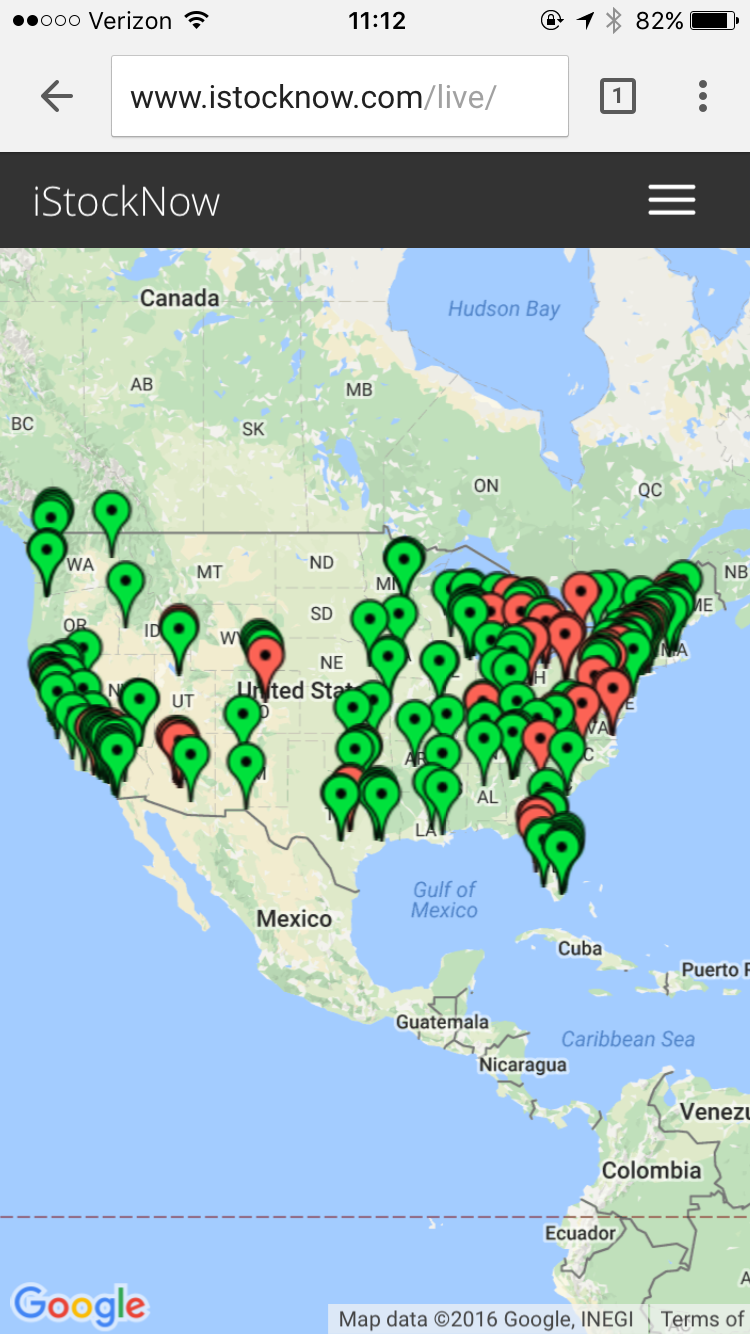 A near-real-time stock for verizon 7+ across country: