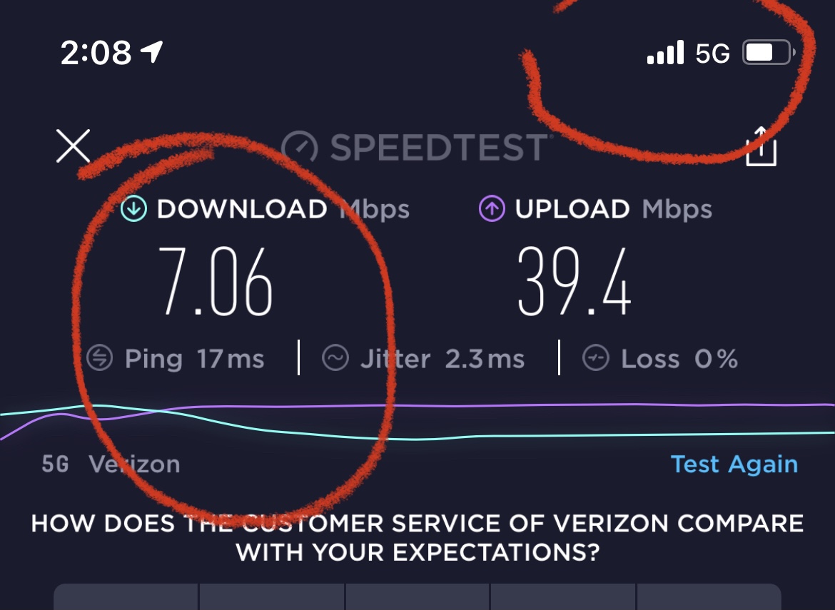 4 bars on 5g with Verizon and these are my results? SHAME ON YOU GUYS!
