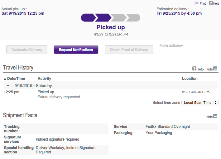Expected Delivery Date: 09/19/2015