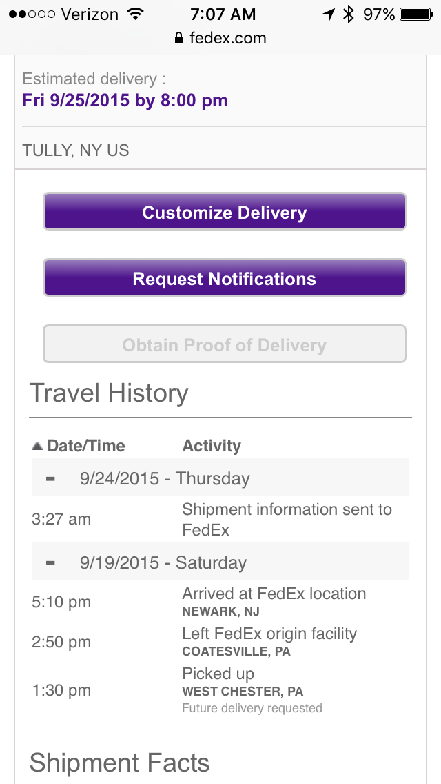 And we finally have movement in New Jersey! Although it used to say delivery by 4:30pm, now that has changed to 8pm.