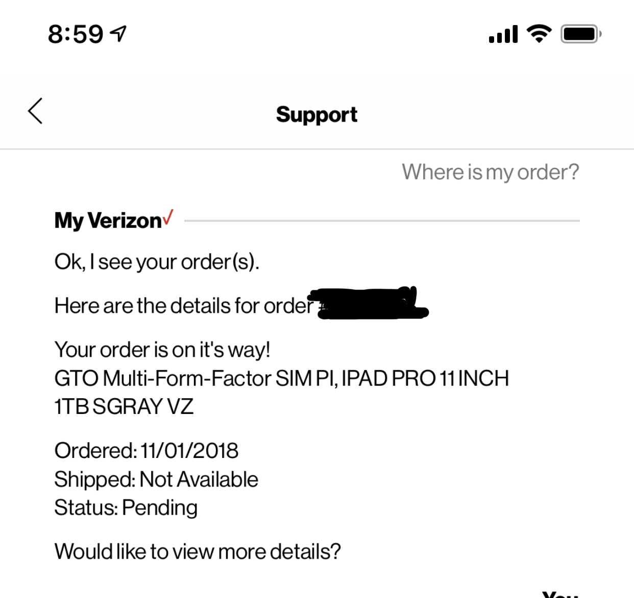 on your order do you happen to see where it says shipment?Just spoke with Verizon and they said I’ll get it 11/9 even though my order email says 11/7. Sucks.
