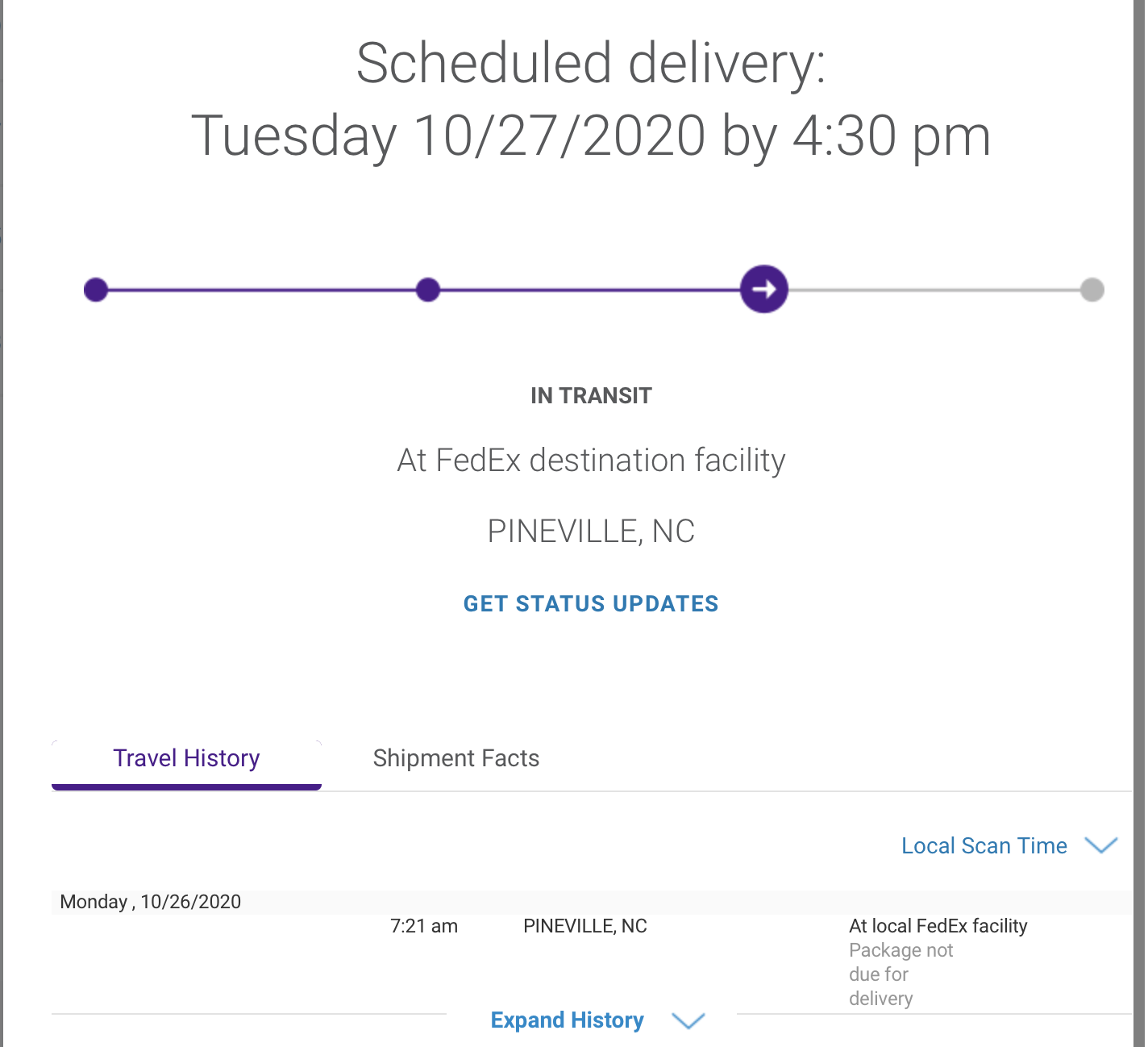 You hate to see it. This is only about 10 miles down the road and will remain there till tomorrow because it's not "due for delivery" until tomorrow.