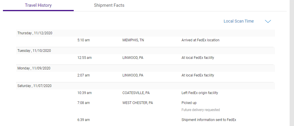 My wife’s phone has been in Fresno (UPS) I was wondering what’s up with it (I’m in NY). Mine is in Linwood PA (FedEx) and hasn’t moved in days but got a text, app alert, and call this AM that my package from FedEx is coming tomorrow.so if no movement out of fresno yet - does that mean it won't be delivered tomorrow?