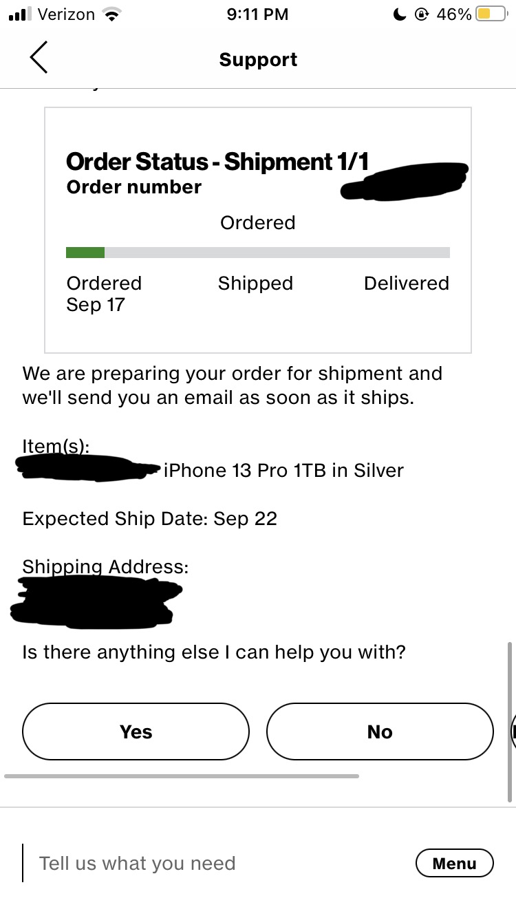 I think that status doesn’t tell us much, if at all. Here is my other phone ordered Sep. 21 (today) whose original estimated delivery date is 10/1. It says it is expected to ship on 9/21.In the Verizon app chat it says my phone is expected to ship tomorrow