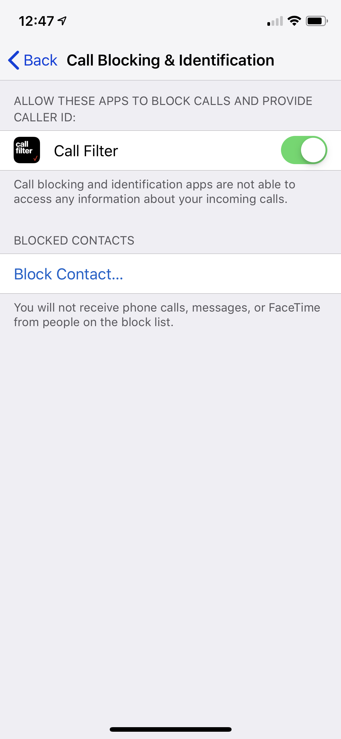 iPhone 8, and reinstalled the Call Filter app. And it said, on startup, something to the effect of "checking your subscription", and started up.