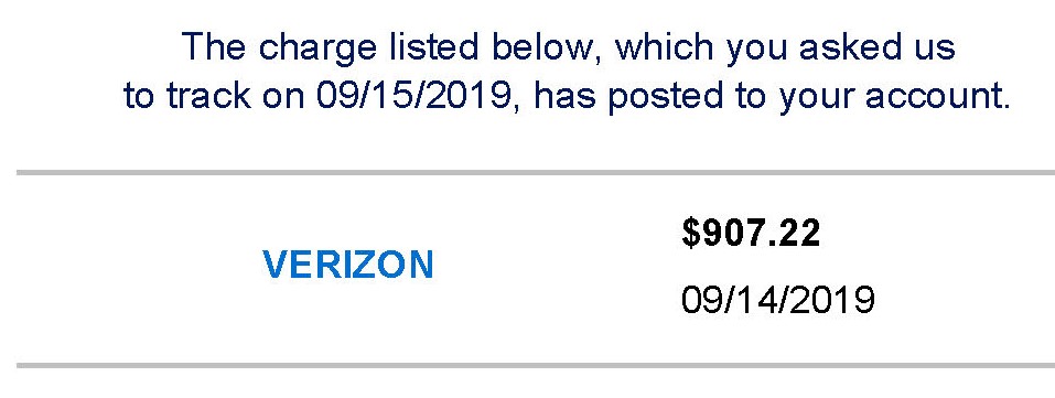 5) About 20 minutes later Amex charge for $907 pops on Amex app, pending from Verizon