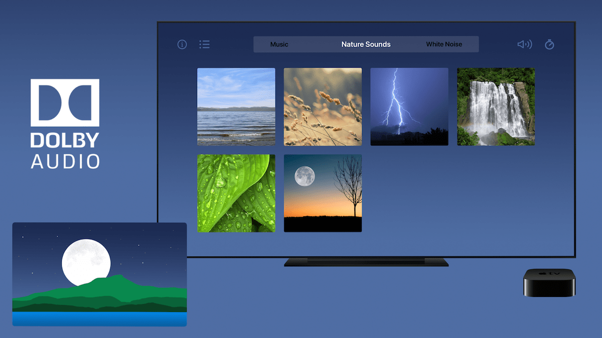 Hey folks! I’m happy to share with my fellow MacRumors forum denizens the release of my latest app for Apple TV, Vermont Sleep Sounds & Music. Vermont Sleep Sounds & Music takes advantage of Dolby Digital surround sound audio to help Apple TV users transform their living room or home theater into the ultimate relaxation getaway!