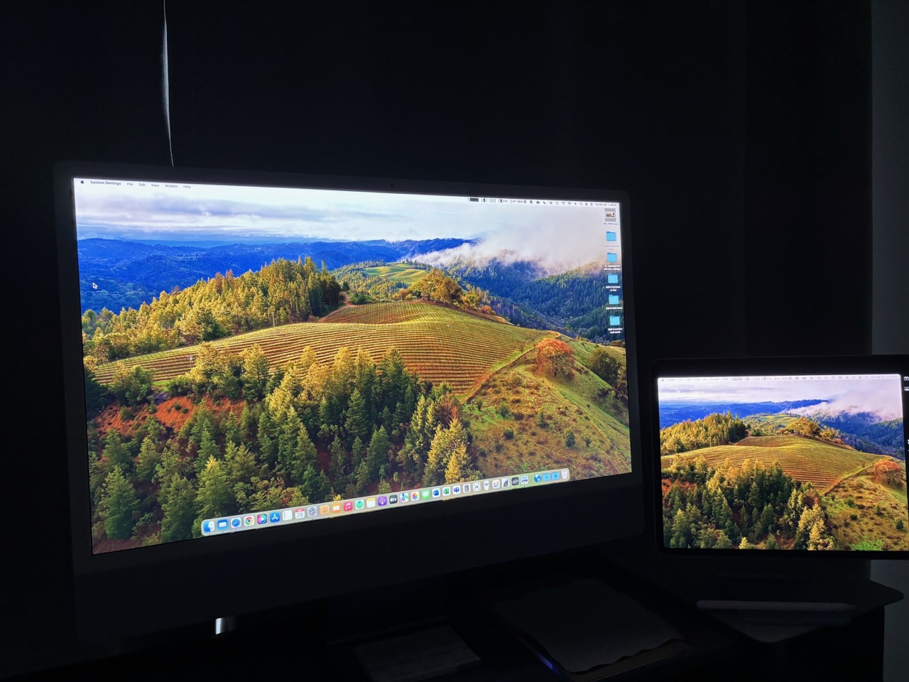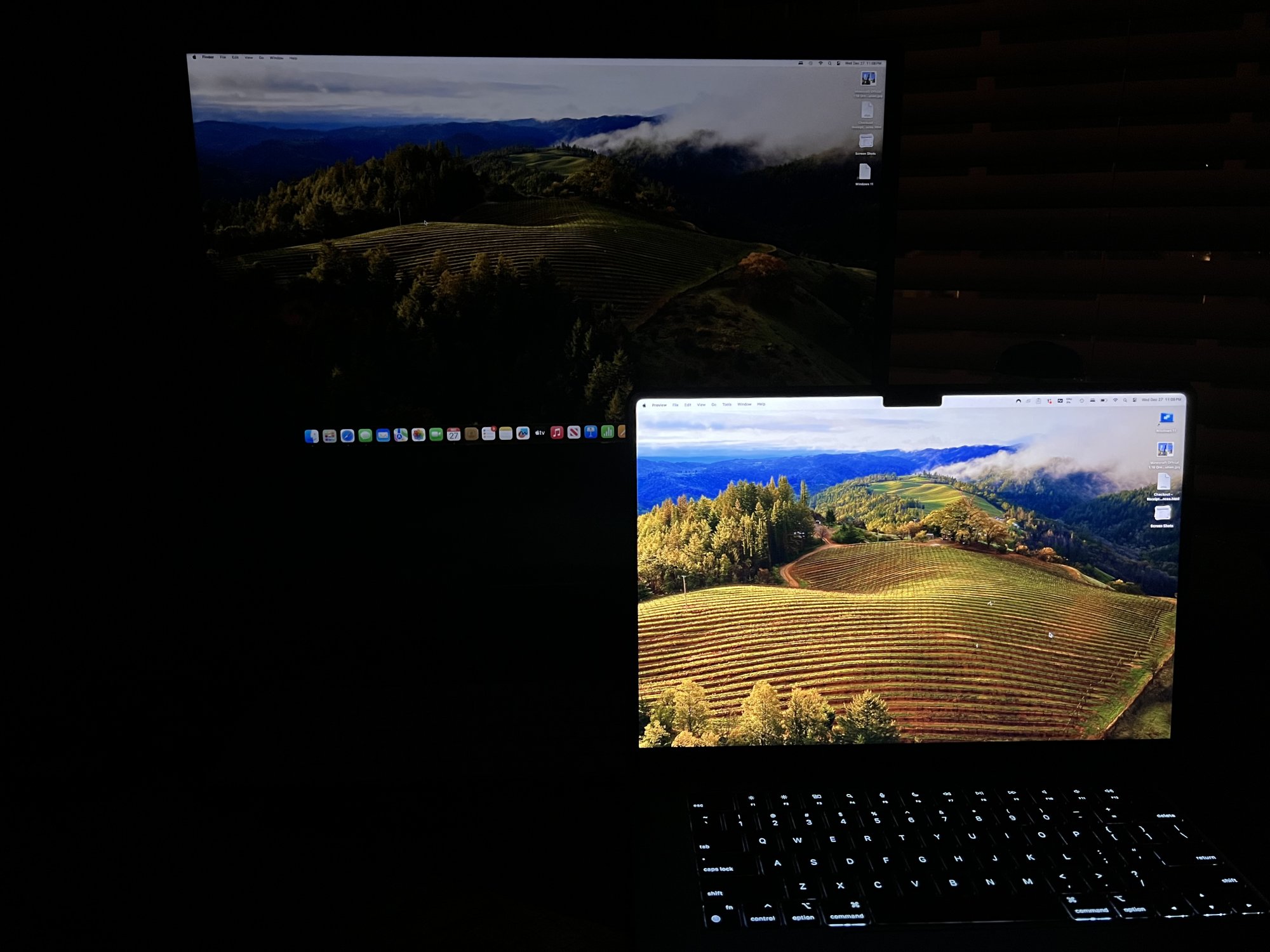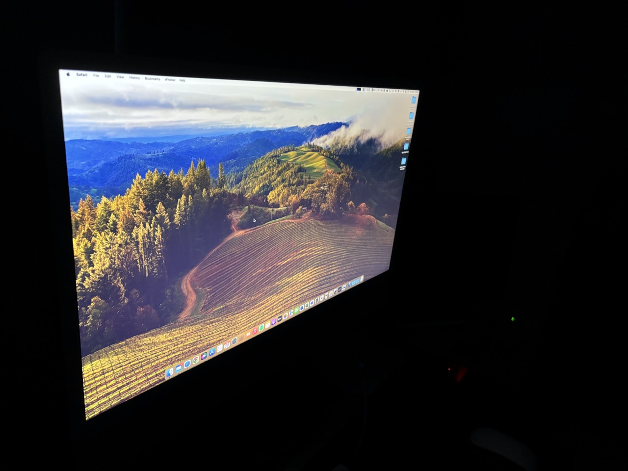 I didn't notice this that much at first but now that I've spent over a month with my new iMac I'm getting to be pretty disappointed with the screen. Next to my M2 MBA 15" I think this panel is just awful in comparison. You can see in the off center photo it's showing lots of hazy white (this is 50% brightness on both displays). This reminds me of those horrible TN panels I used to get.