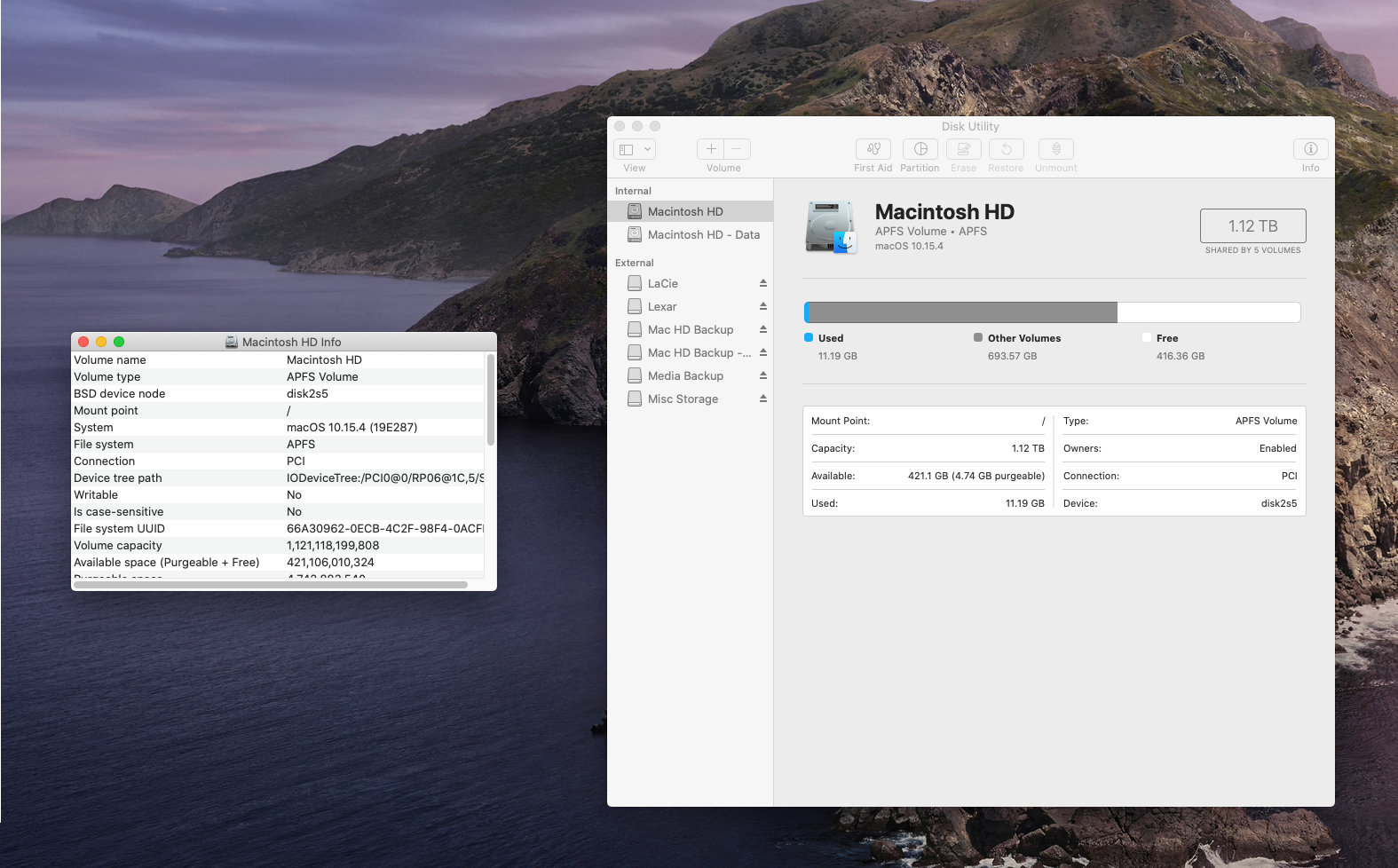 My late 2011 mini has gotten very slow lately. Chrome keeps freezing, I keep getting the pinwheel. Basic operations that used to be instantaneous now have a noticeable lag. I opened disc utility and I see that my HD is listed twice under the internal drives -- Macintosh HD and Mactintosh HS - Data. Is this normal? Also, under the 1.12 TB button, it says "Shared by 5 volumes." I don't think my HD is partitioned at all, although there are two user accounts. Any way to know what this is?