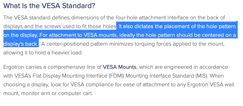 The VESA for the iMac doesn’t need to carry as much weight, and most of that weight — the center of gravity — is lower.