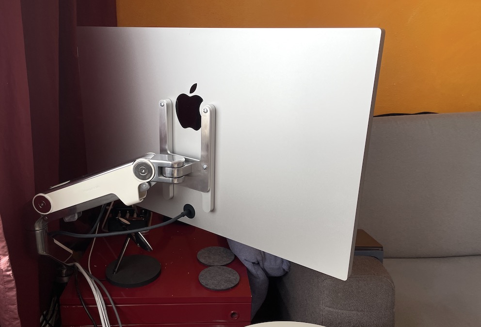 The Studio Display, I’m assuming, weighs closer to an iMac 27”. And to make it smaller or lower would probably weaken it.